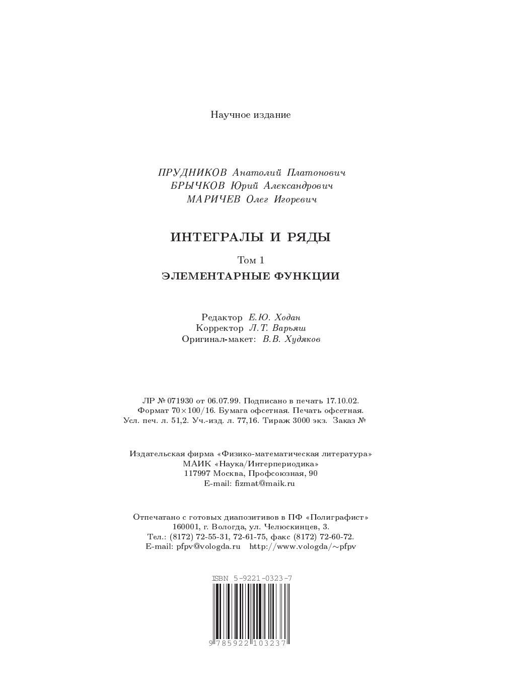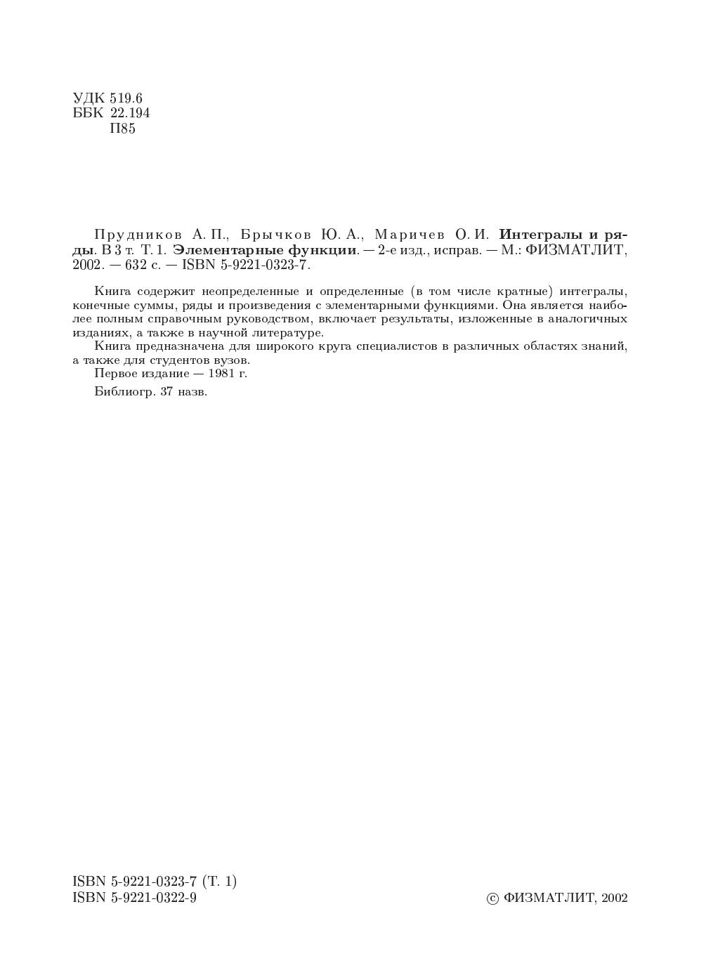 Авторы: Прудников А.П., Брычков Ю.А., Маричев О.И.