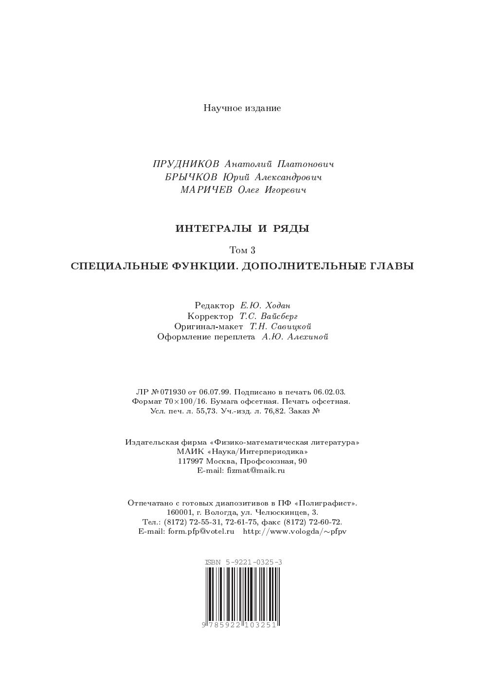 Интегралы и ряды. Т 3. Специальные функции. Дополнительные главы