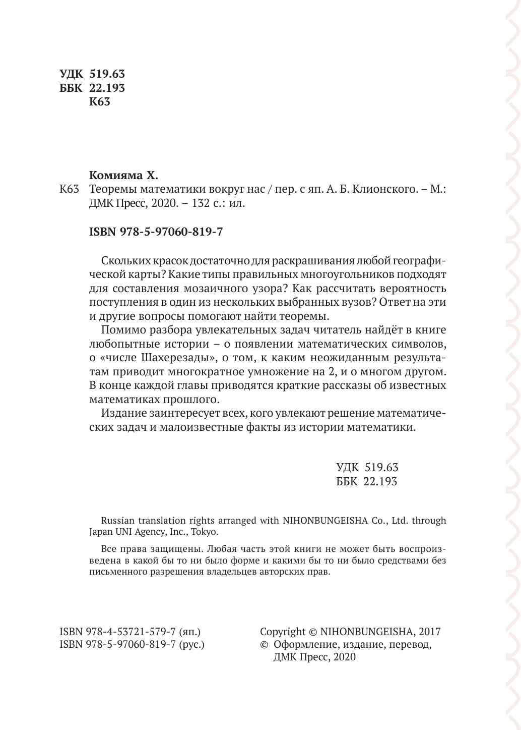 Помимо разбора увлекательных задач читатель найдёт в книге любопытные истории – о появлении математических символов, о «числе Шахерезады», о том, к каким неожиданным результатам приводит многократное умножение на 2, и о многом другом. В конце каждой главы приводятся краткие рассказы об известных математиках прошлого.