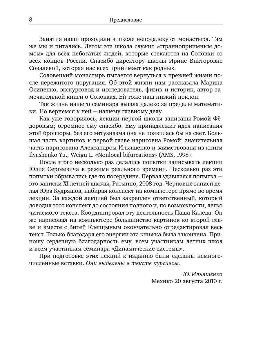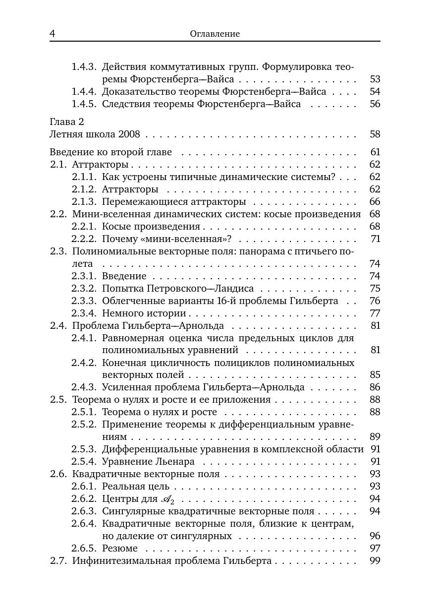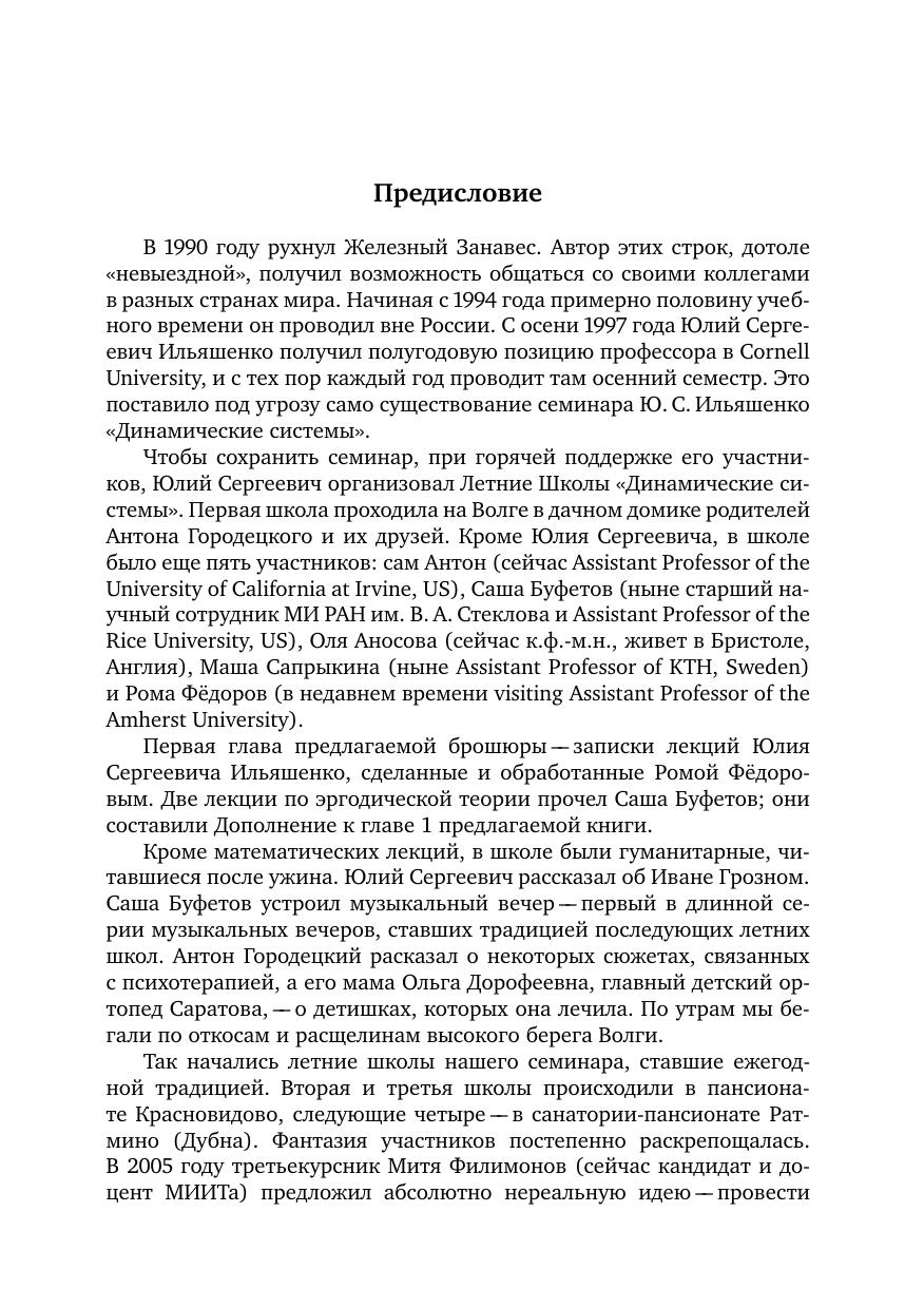 Теория динамических систем делится на две части: многомерные системы (царство хаоса) и маломерные (царство порядка). К первой, более обширной области относятся эпиморфизмы в любой размерности, диффеоморфизмы в размерности 2 и потоки в размерности три и выше. Ко второй относятся диффеоморфизмы окружности и векторные поля на плоскости, вещественной и комплексной. Предлагаемая книга посвящена обеим темам. В теории многомерных систем она посвящена отысканию новых локально типичных свойств динамических систем, и прежде всего исследованию аттракторов. Во второй части нас интересуют полиномиальные векторные поля на вещественной и комплексной плоскости. Принятый в этой книге подход основан на связи между случайными и детерминированными динамическими системами. Книга может служить введением в предмет. Каждая тема описана в ней эскизно, зато читатель может войти в курс дела быстрее, чем это позволяет любая монография.
