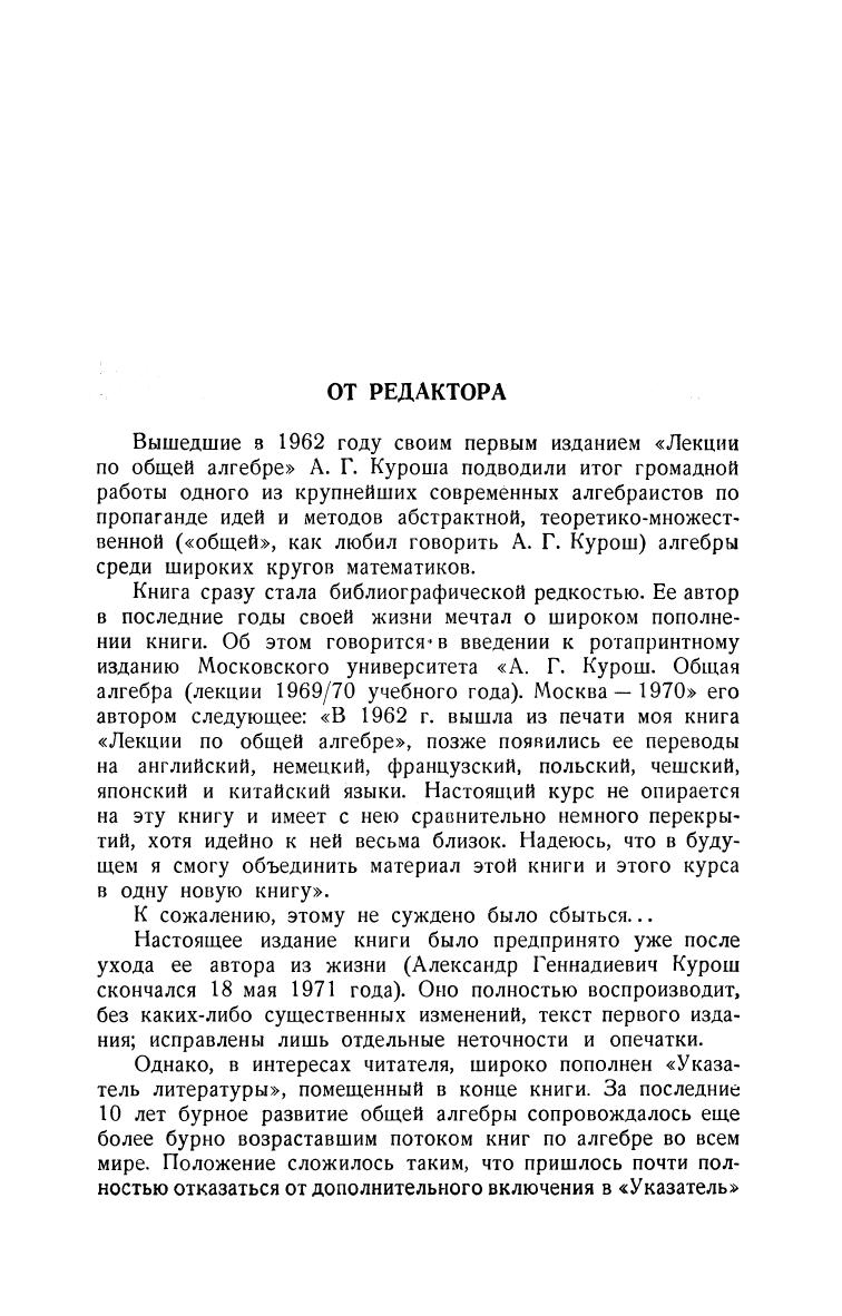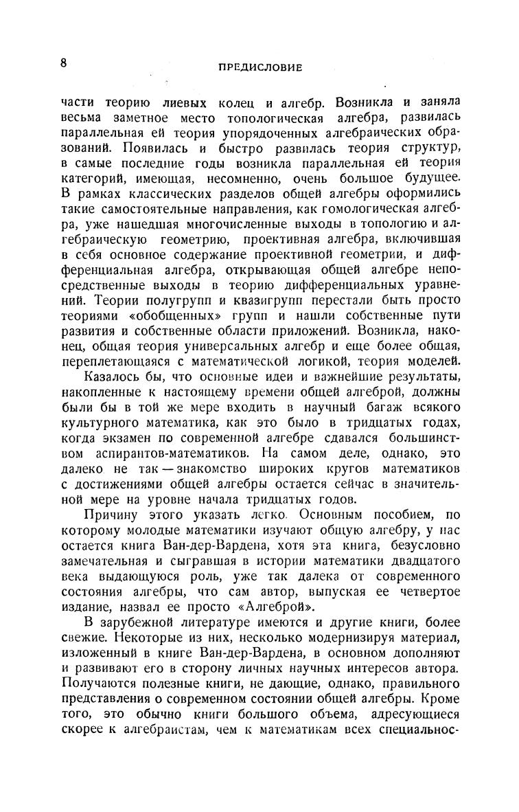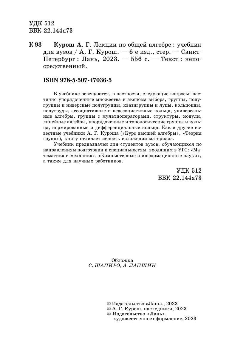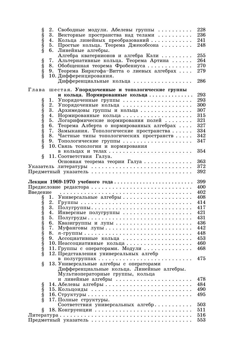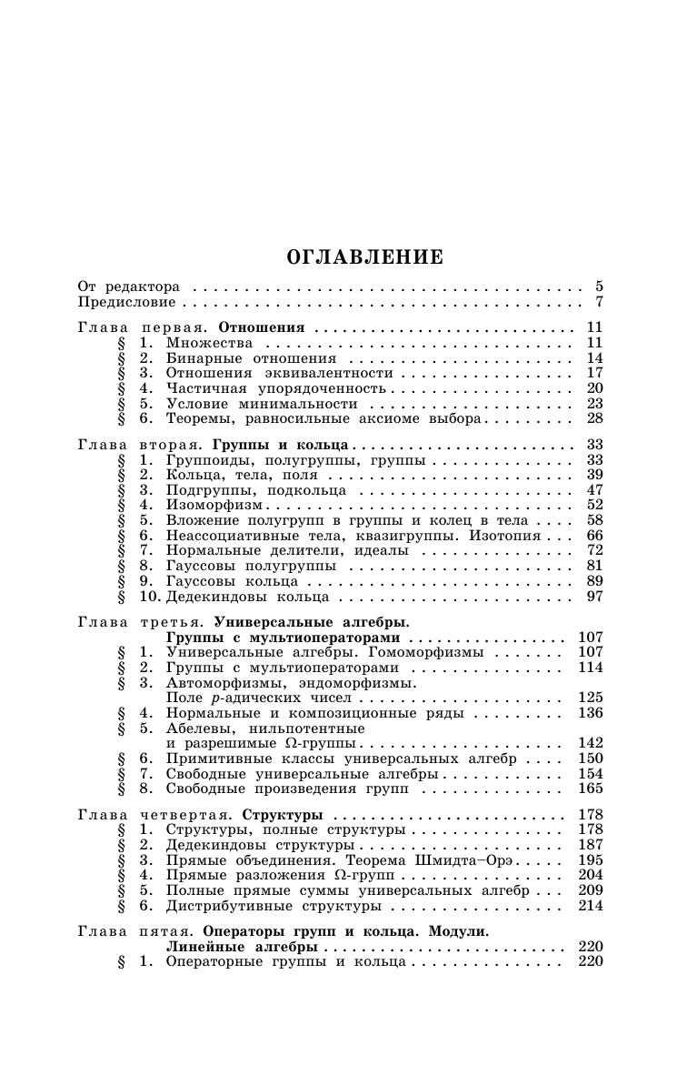 В учебнике освещаются, в частности, следующие вопросы: частично упорядоченные множества и аксиома выбора, группы, полугруппы и инверсные полугруппы, квазигруппы и лупы, кольцоиды, полугруды, ассоциативные и неассоциативные кольца, универсальные алгебры, группы с мультиоператорами, структуры, модули, линейные алгебры, упорядоченные и топологические группы и кольца, нормированные и дифференциальные кольца. Как и другие известные учебники А. Г. Куроша («Курс высшей алгебры», «Теория групп»), книгу отличает ясность изложения материала. Учебник предназначен для студентов вузов, обучающихся по направлениям подготовки и специальностям, входящим в УГС: «Математика и механика», «Компьютерные и информационные науки», а также для научных работников.