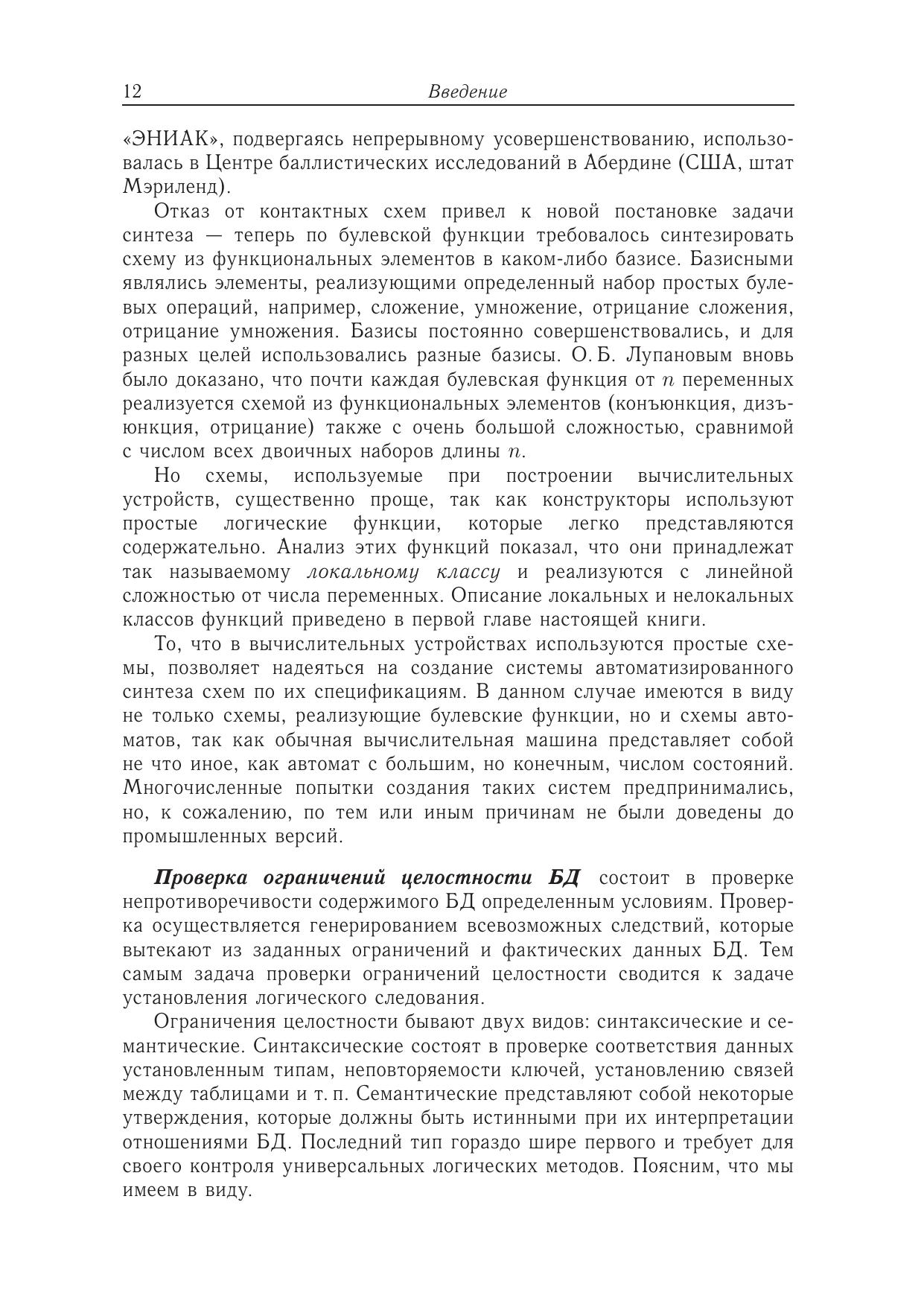 Логический формализм рассматривается как инструмент для формулировки и решения содержательных задач. Анализируются его два аспекта: семантический — установление выполнимости логических функций — и синтаксический — построение выводов в логическом исчислении. Основная задача книги состоит в выделении так называемых локальных задач, которые характеризуются простыми процедурами как установления выполнимости, так и построения выводов. Для описания этих классов задач вводятся матричное представление логических формул и операции над матрицами. Такое представление дает возможность увидеть существенные свойства логических формул, которые при традиционном подходе не проявляются.Книга может быть полезна в качестве учебного пособия по дисциплинам: дискретная математика, информационное моделирование, искусственный интеллект и проектирование экспертных систем.