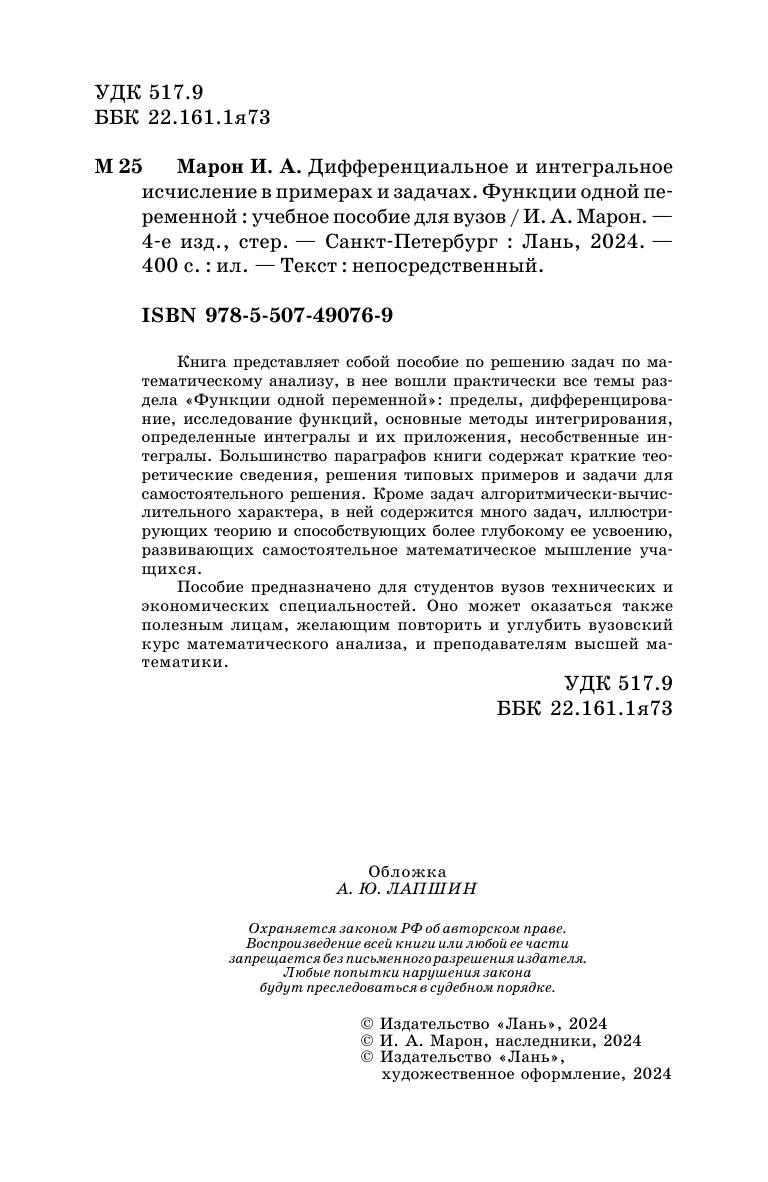 Книга представляет собой пособие по решению задач по математическому анализу, в нее вошли практически все темы раздела «функции одной переменной»: пределы, дифференцирование, исследование функций, основные методы интегрирования, определенные интегралы и их приложения, несобственные интегралы. Большинство параграфов книги содержит краткие теоретические сведения, решения типовых примеров и задачи для самостоятельного решения. Кроме задач алгоритмически-вычислительного характера, в ней содержится много задач, иллюстрирующих теорию и способствующих более глубокому ее усвоению, развивающих самостоятельное математическое мышление учащихся. Пособие предназначено для студентов технических и экономических специальностей. Оно может оказаться также полезным лицам, желающим повторить и углубить вузовский курс математического анализа, и преподавателям высшей математики.
