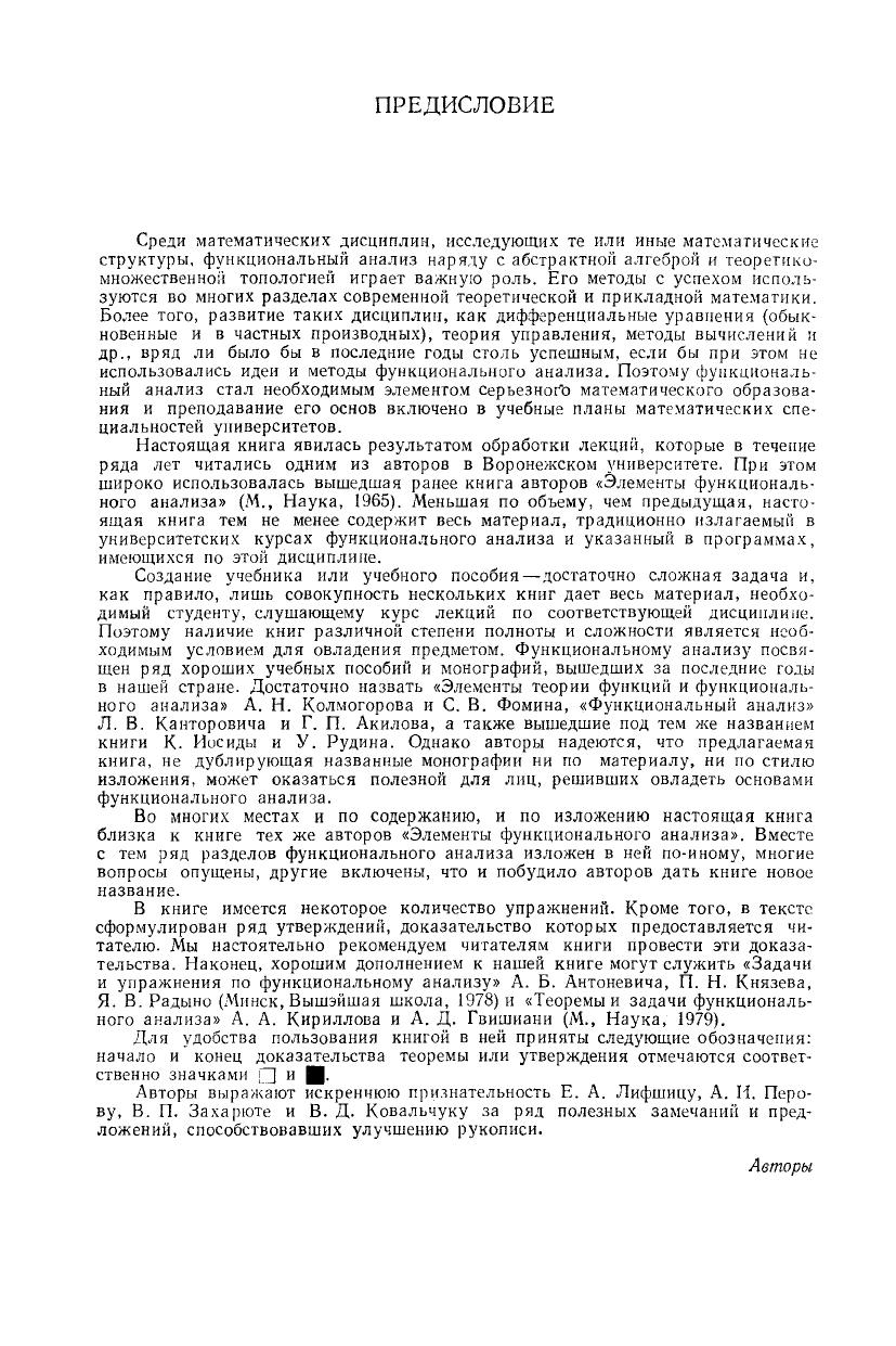 Книга написана в соответствии с программой по курсу функционального анализа для университетов. Изложение ведется на высоком методическом и научном уровне и сопровождается большим числом интересных примеров и приложений. Приведены упражнения для самостоятельной работы. Рассматриваются непрерывные операторы и уравнения с ними, дифференциальное и интегральное исчисление в линейных нормированных пространствах, спектральная теория ограниченных самосопряженных операторов в гильбертовых пространствах. Учебное пособие предназначается для студентов математических и физических специальностей.