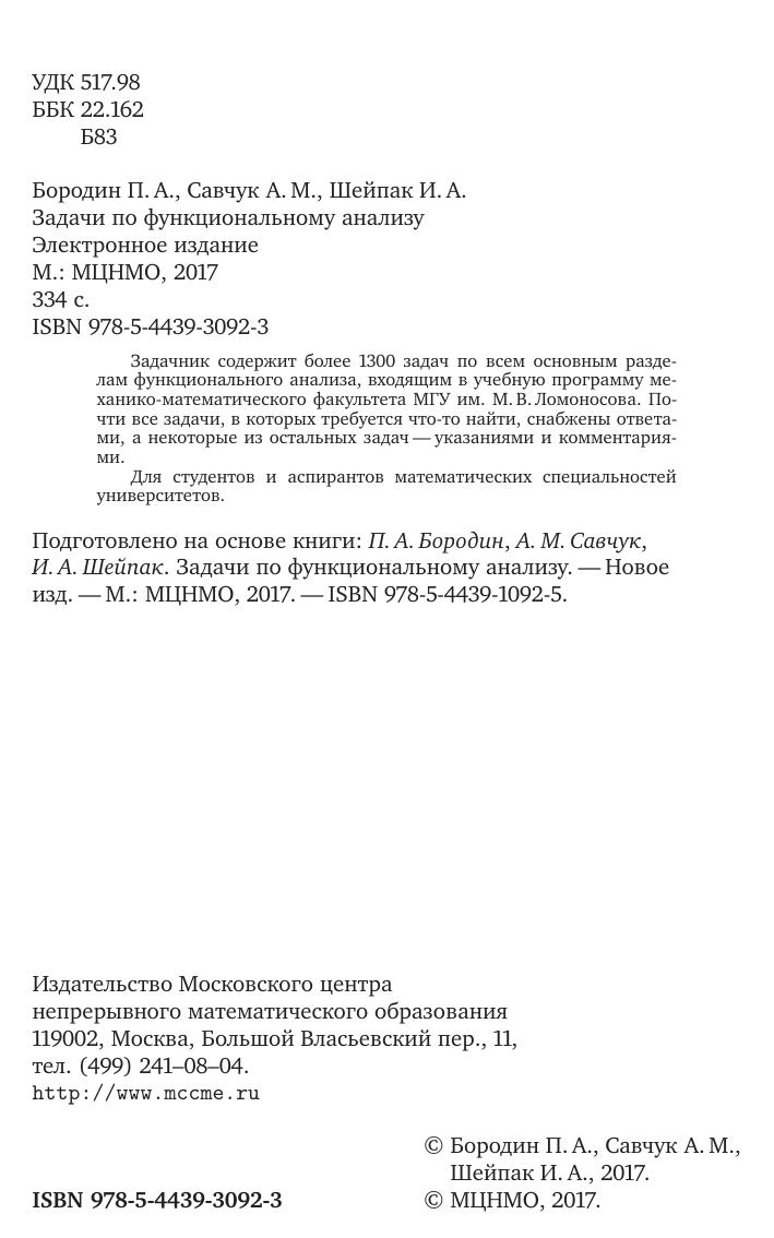 Задачник содержит более 1300 задач по всем основным разделам функционального анализа, входящим в учебную программу механико-математического факультета МГУ им. М. В. Ломоносова. Почти все задачи, в которых требуется что-то найти, снабжены ответами, а некоторые из остальных задач—указаниями и комментариями. Для студентов и аспирантов математических специальностей университетов.