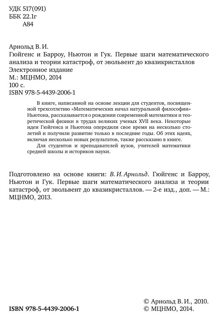 В книге, написанной на основе лекции для студентов, посвященной трехсотлетию «Математических начал натуральной философии» Ньютона, рассказываетсяорождении современнойматематикии теоретической физики в трудах великих ученых XVII века. Некоторые идеи Гюйгенса и Ньютона опередили свое время на несколько столетий и получили развитие только в последние годы. Об этих идеях, включая несколько новых результатов, также рассказано в книге. Для студентов и преподавателей вузов, учителей математики средней школы и историков науки.