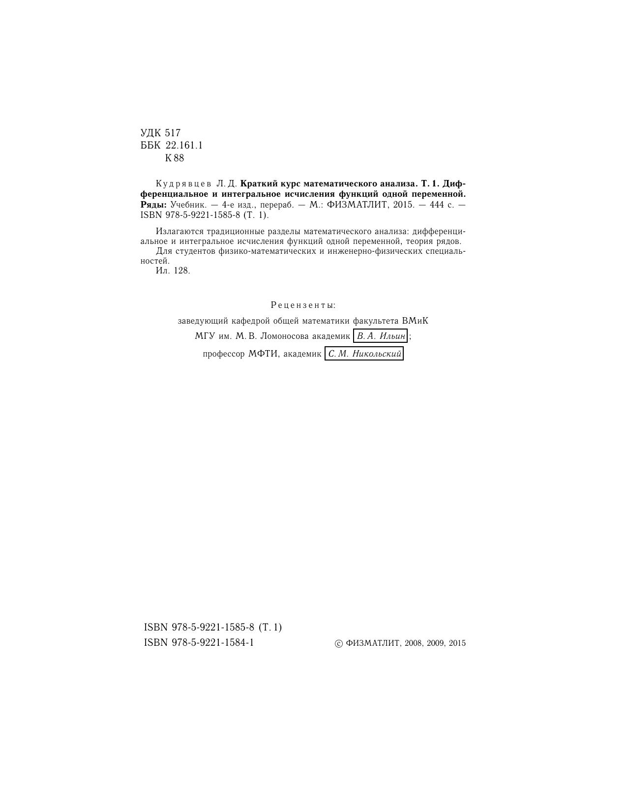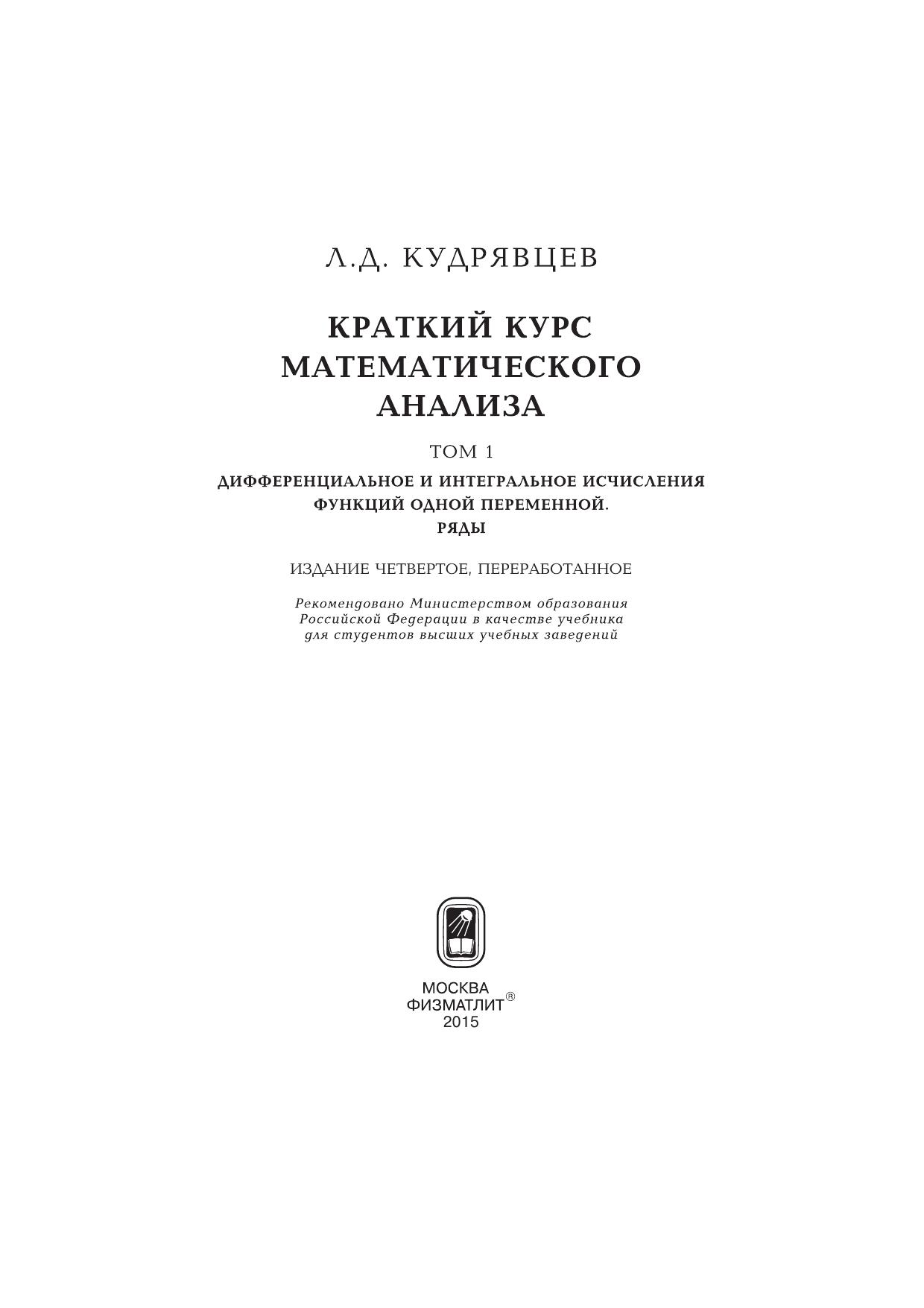 Краткий курс математического анализа. Т. 1. Дифференциальное и интегральное исчисления функций одной переменной. Ряды