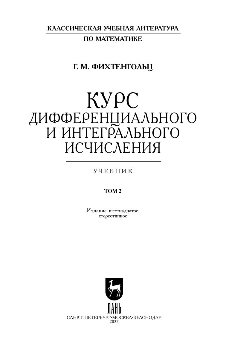 Курс дифференциального и интегрального исчисления: в 3-х тт. Том 2