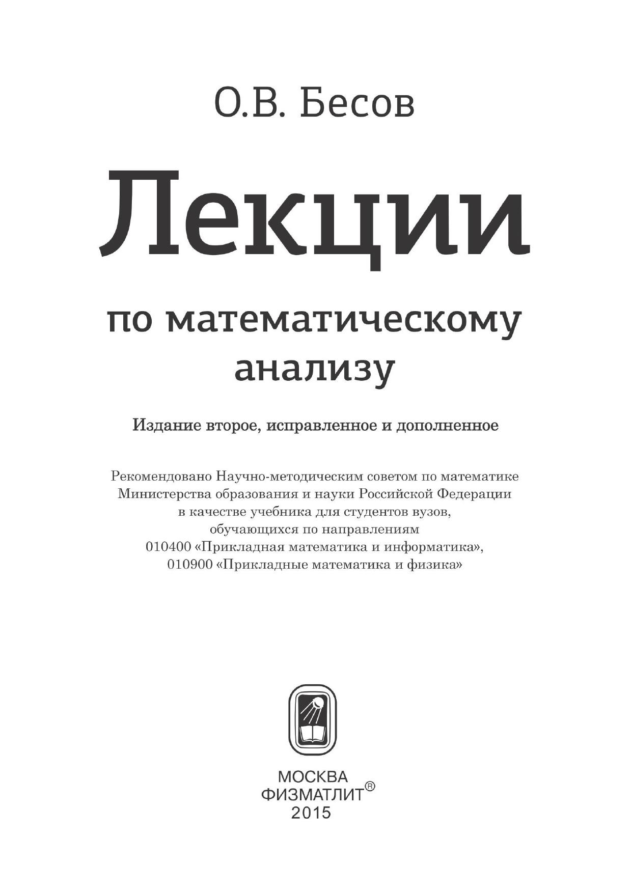 Гриф: Рекомендовано Научно-методическим советом по математике Министерства образования и науки Российской Федерации в качестве учебника для студентов вузов, обучающихся по направлениям 010400 «Прикладная математика и информатика», 010900 «Прикладные математика и физика».
