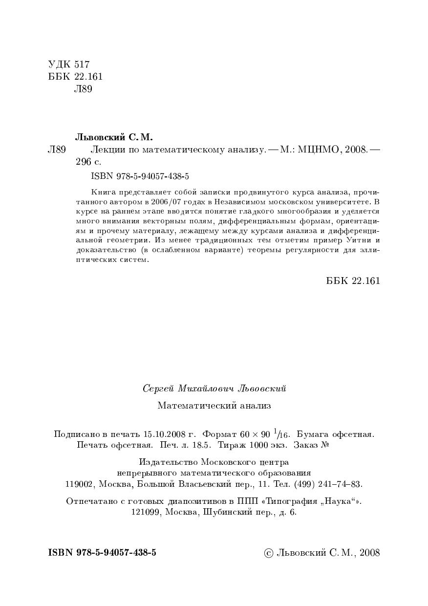 Лекции по математическому анализу