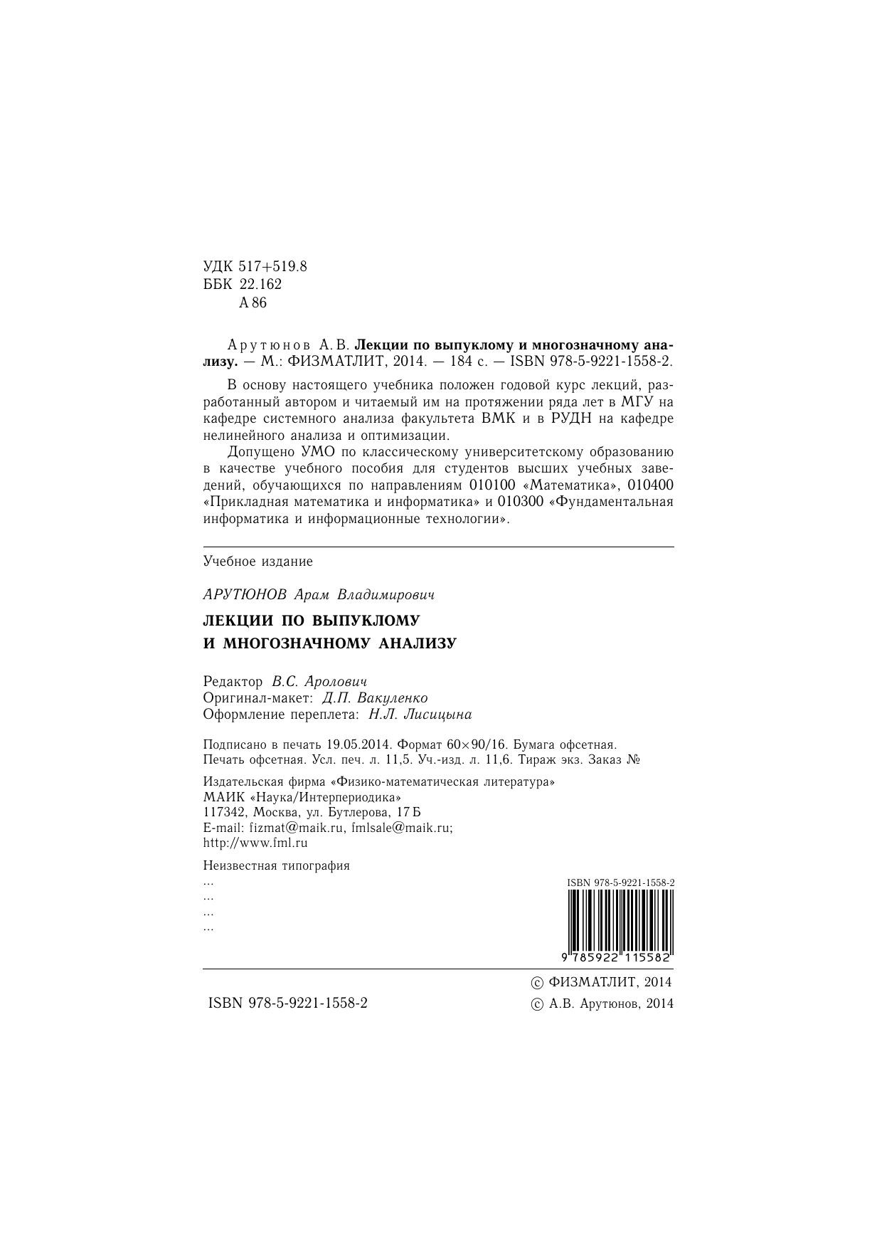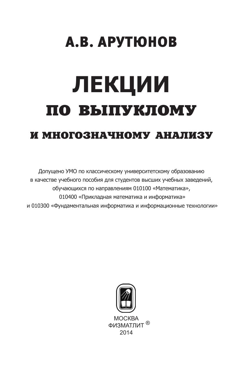 В основу настоящего учебника положен годовой курс лекций, разработанный автором и читаемый им на протяжении ряда лет в МГУ на кафедре системного анализа факультета ВМК и в РУДН на кафедре нелинейного анализа и оптимизации.