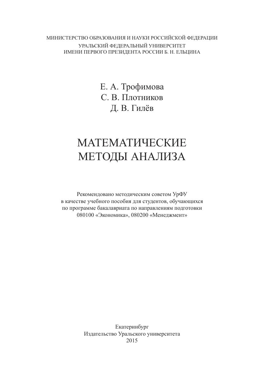 Разделы учебного пособия включают блок теоретического материала и задачи, предназначенные как для аудиторных занятий, так и для самостоятельной работы. Дается экономическая интерпретация математических понятий. Для студентов, изучающих дисциплины «Математический анализ», «Теория вероятностей и математическая статистика», «Методы оптимальных решений».