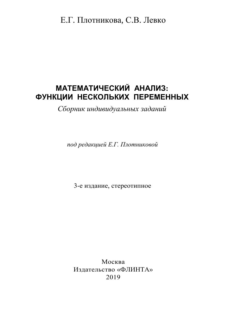 Сборник содержит основные теоретические сведения и наборы индивидуальных заданий по важнейшему разделу математического анализа – «Функции нескольких переменных». Каждое задание сопровождается примером решения с необходимыми методическими указаниями. Предлагаемые наборы индивидуальных заданий могут использоваться для организации как аудиторной, так и внеаудиторной самостоятельной работы студентов.