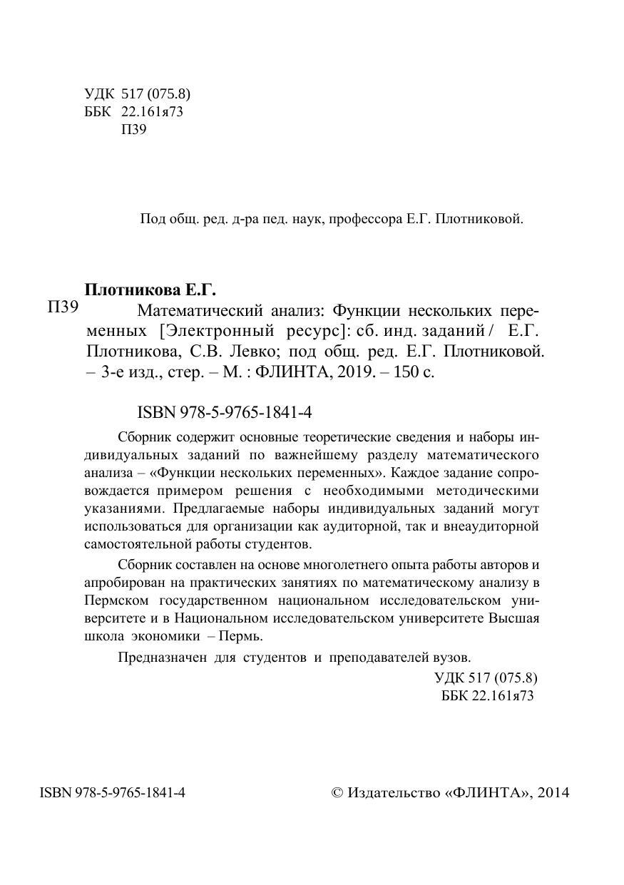 Сборник составлен на основе многолетнего опыта работы авторов и апробирован на практических занятиях по математическому анализу в Пермском государственном национальном исследовательском университете и в Национальном исследовательском университете Высшая школа экономики – Пермь.