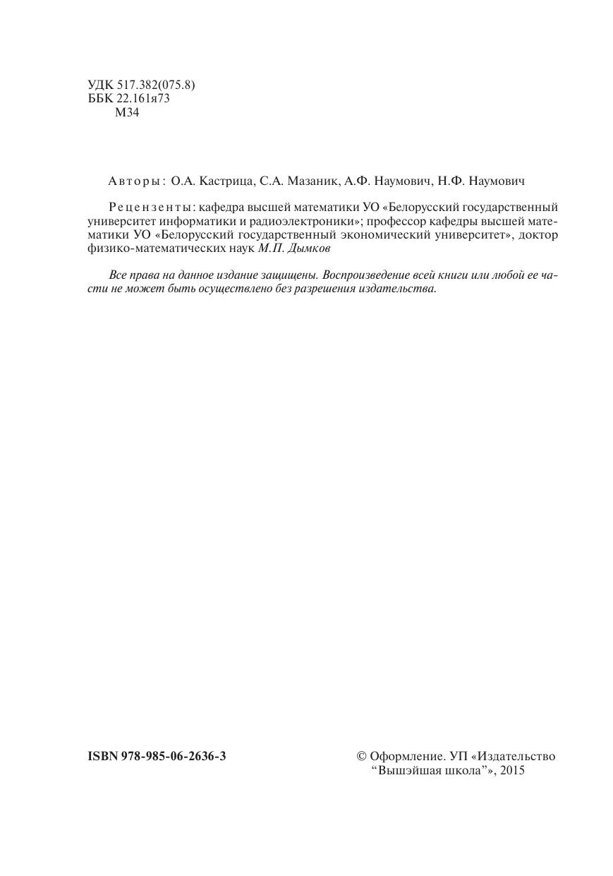 Гриф: Допущено Министерством образования Республики Беларусь в качестве учебного пособия для студентов учреждений высшего образования по физическим, математическим и экономическим специальностям