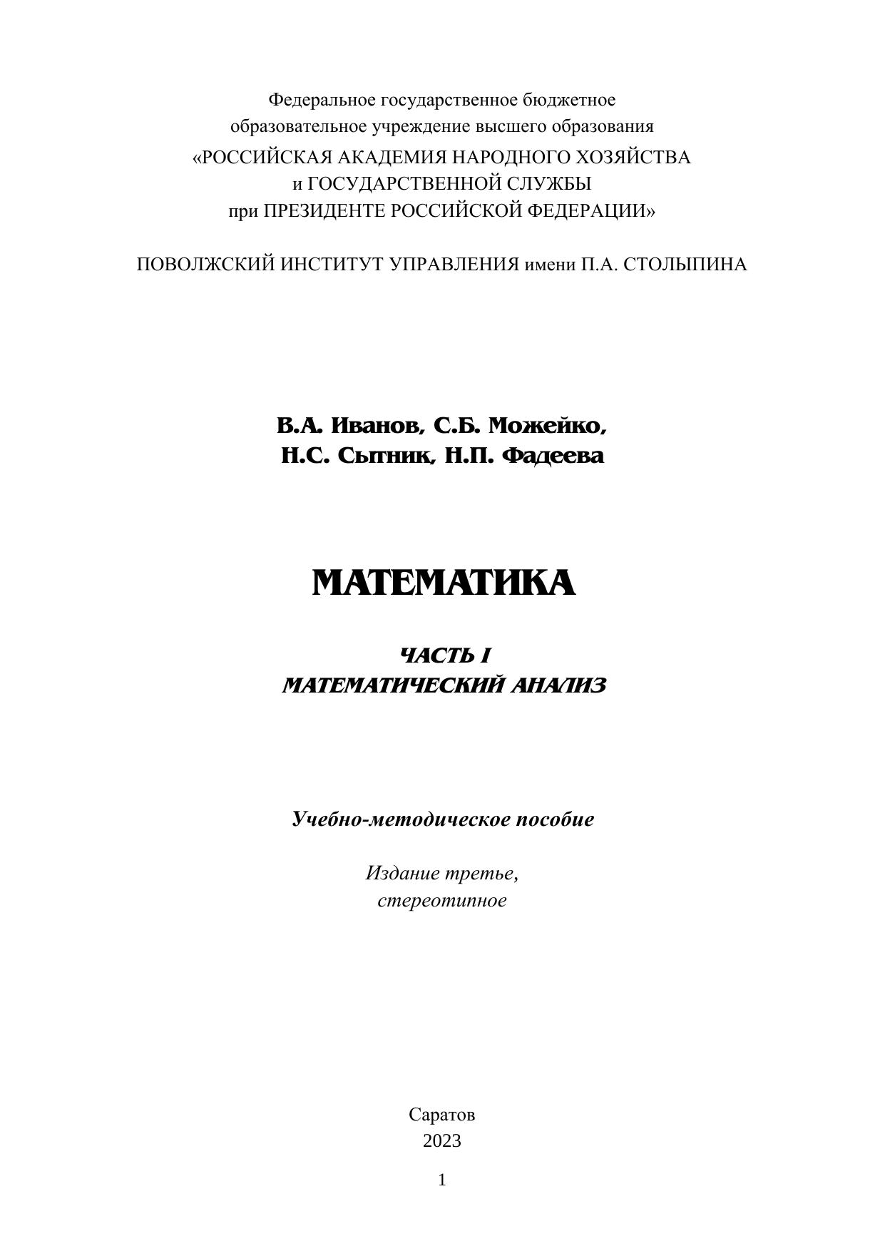 Математика. Часть I: Математический анализ