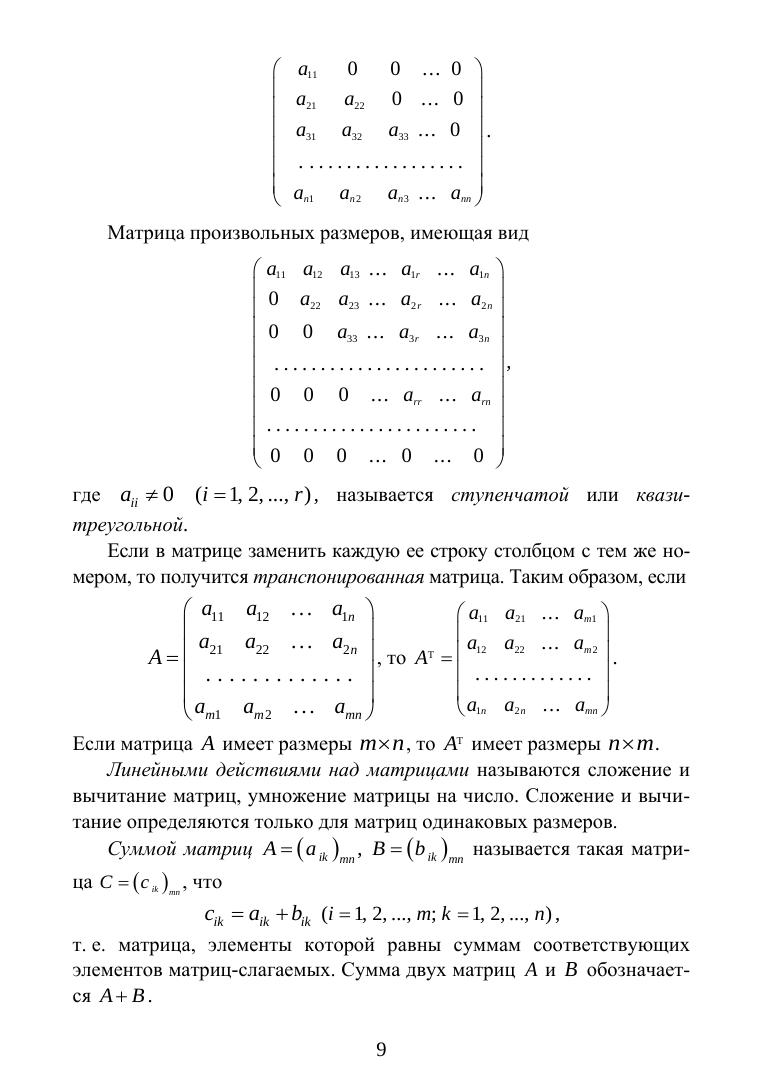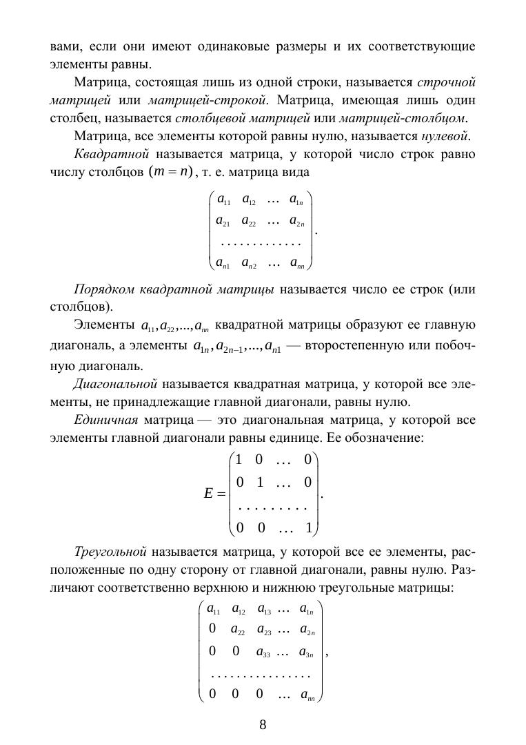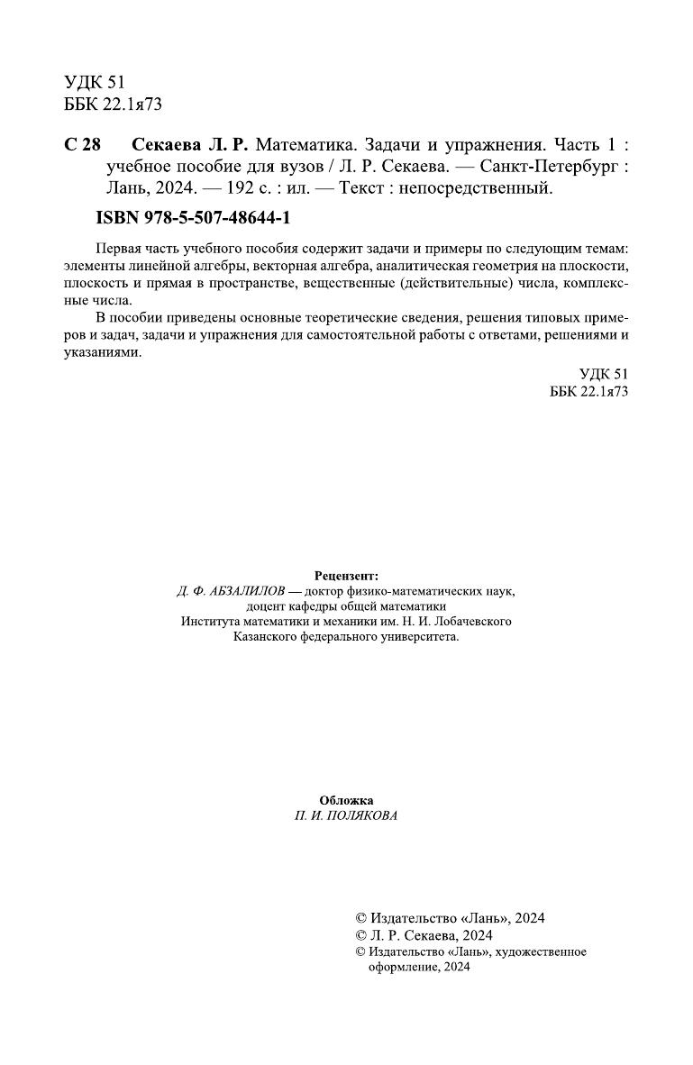 Первая часть учебного пособия содержит задачи и примеры по следующим те-мам: элементы линейной алгебры, векторная алгебра, аналитическая геометрия на плоскости, плоскость и прямая в пространстве, вещественные (действительные) числа, комплексные числа. В пособии приведены основные теоретические сведения, решения типовых при-меров и задач, задачи и упражнения для самостоятельной работы с ответами, решени-ями и указаниями.