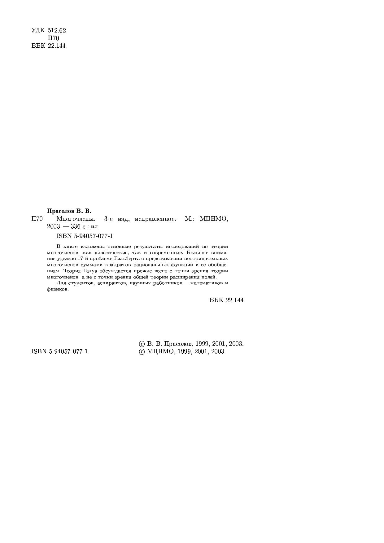 Авторы: Прасолов В.В.