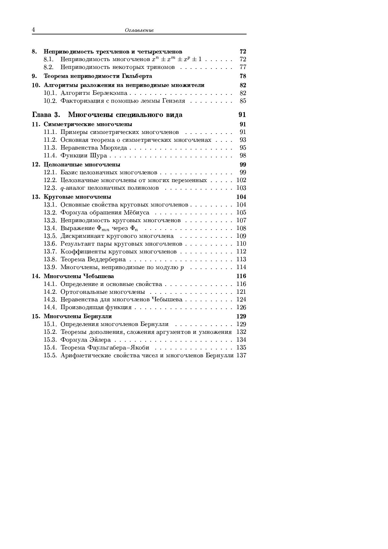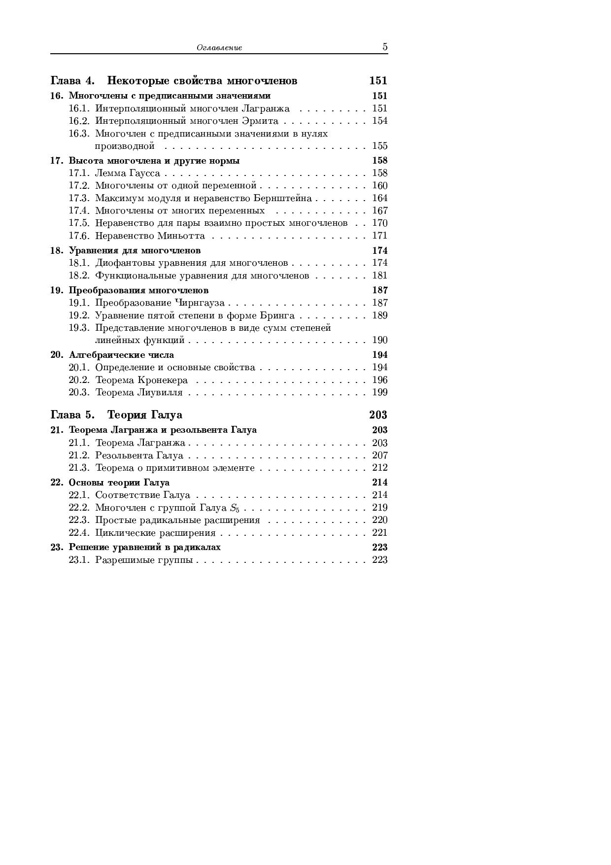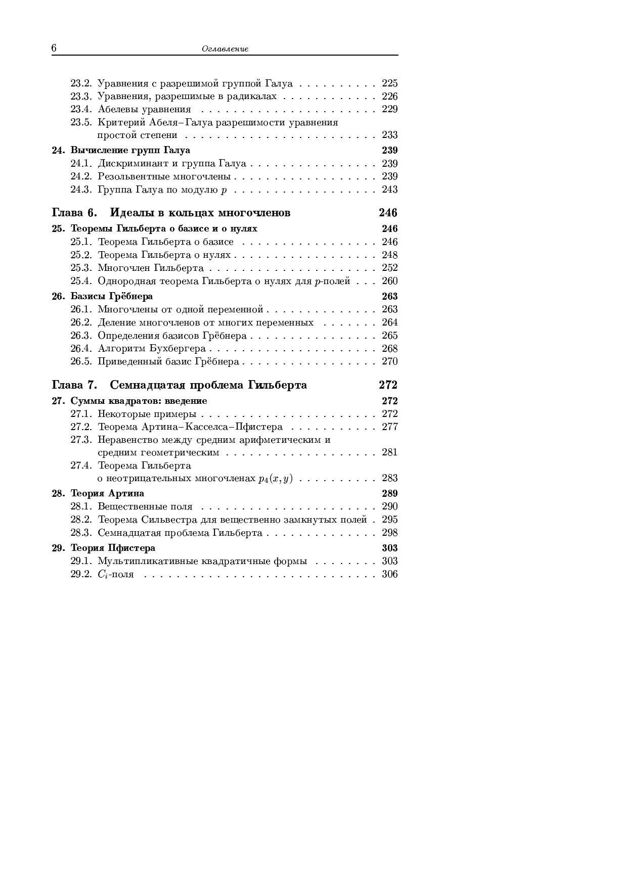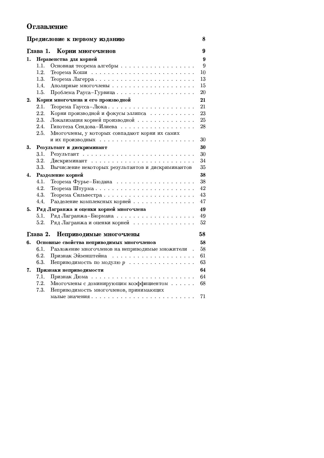 В книге изложены основные результаты исследований по теории многочленов, как классические, так и современные. Большое внимание уделено 17-й проблеме Гильберта о представлении неотрицательных многочленов суммами квадратов рациональных функций и ее обобщениями. Теория Галуа обсуждается прежде всего с точки зрения теории многочленов, а не с точки зрения теории общей теории расширения полей.Для студентов, аспирантов, научных работников — математиков и физиков.