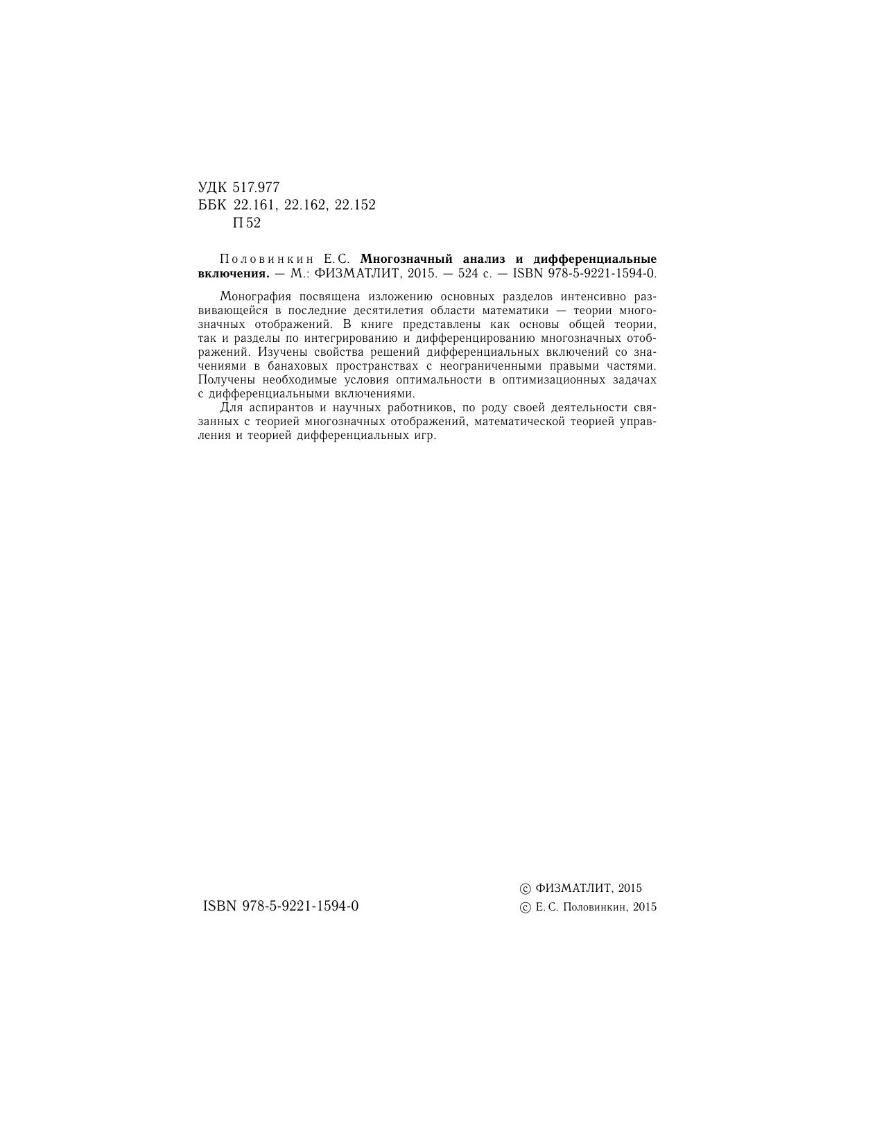 Для аспирантов и научных работников, по роду своей деятельности связанных с теорией многозначных отображений, математической теорией управления и теорией дифференциальных игр.