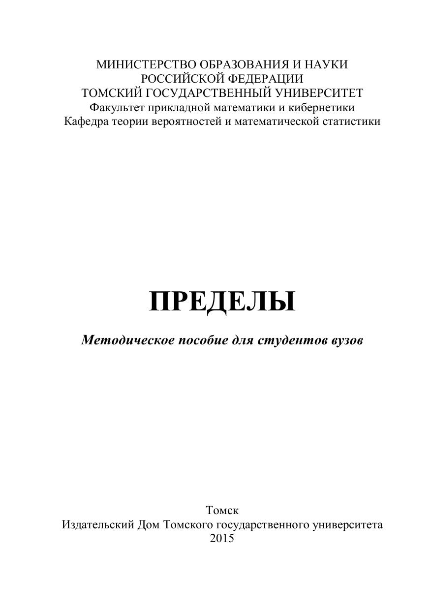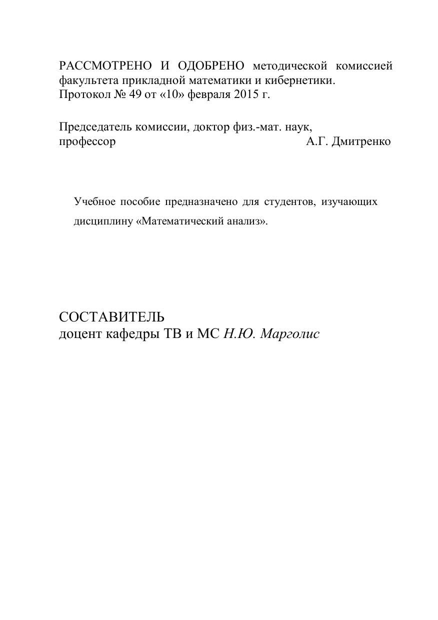 Учебное пособие предназначено для студентов, изучающих дисциплину «Математический анализ»