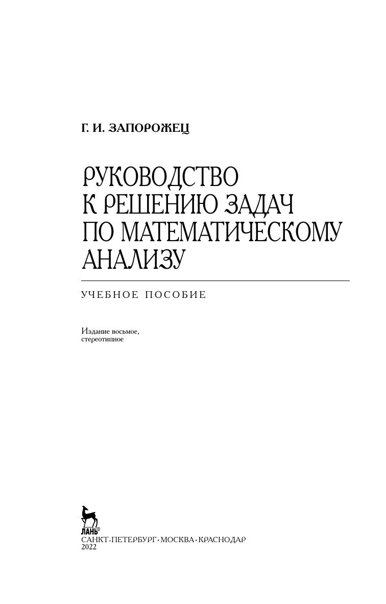 «Руководство» содержит задачи по темам: производная и дифференциал функции, исследование функций и построение их графиков, неопределенный интеграл, определенный интеграл, функции многих переменных, кратные, криволинейные и поверхностные интегралы, элементы теории поля, ряды, дифференциальные уравнения. Приведены подробные примерные решения типичных задач, а также необходимые теоретические сведения. Особенность данного задачника — изложение материала, позволяющее использовать его для самостоятельной работы. Учебное пособие предназначено для студентов технических и технологических специальностей вузов.