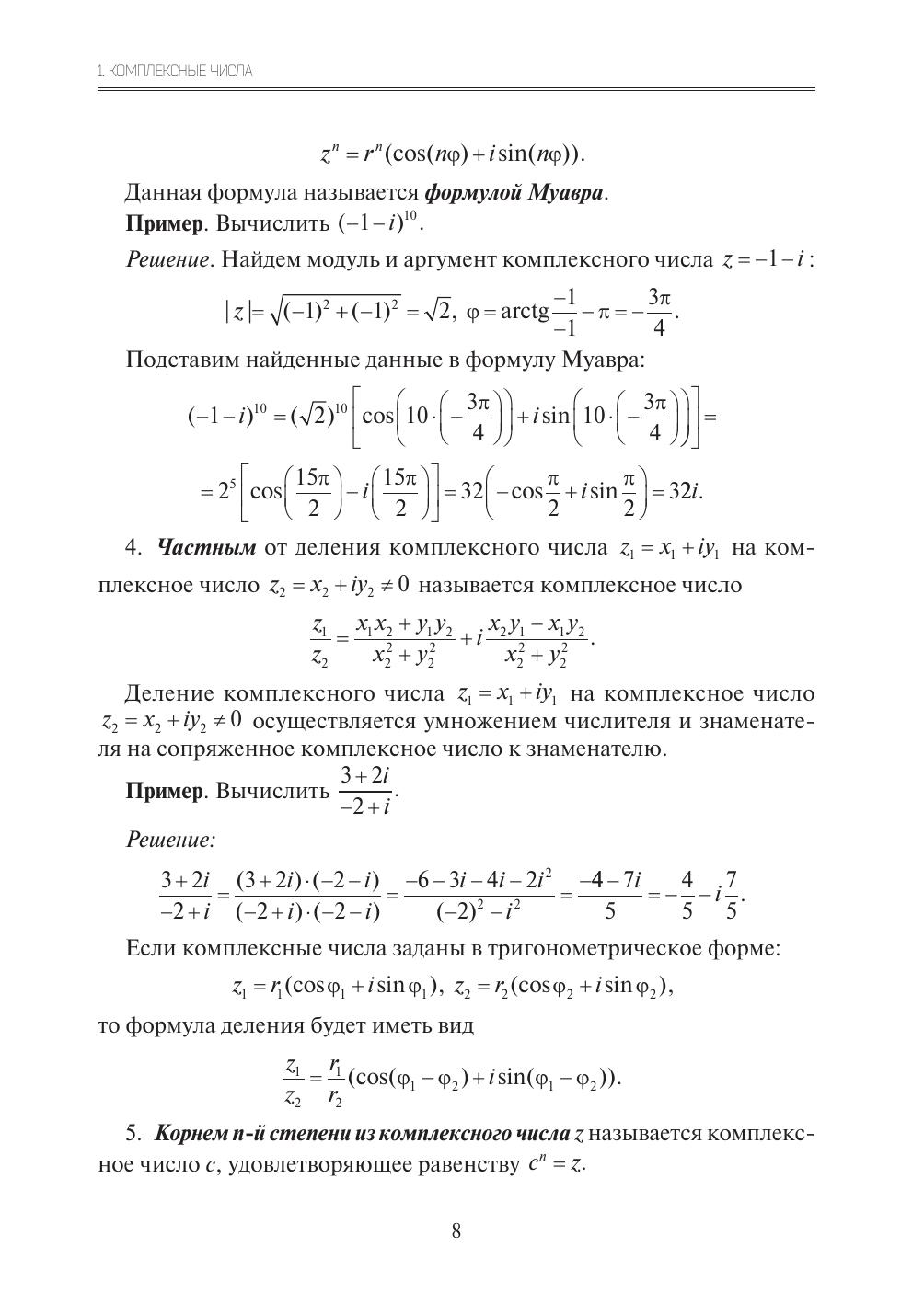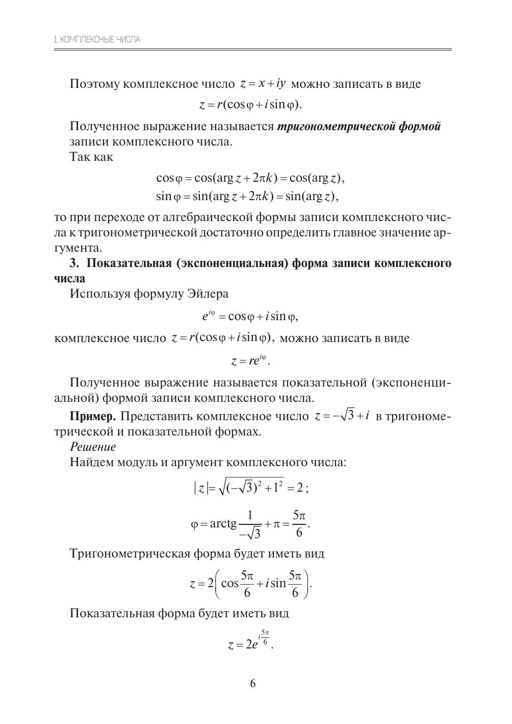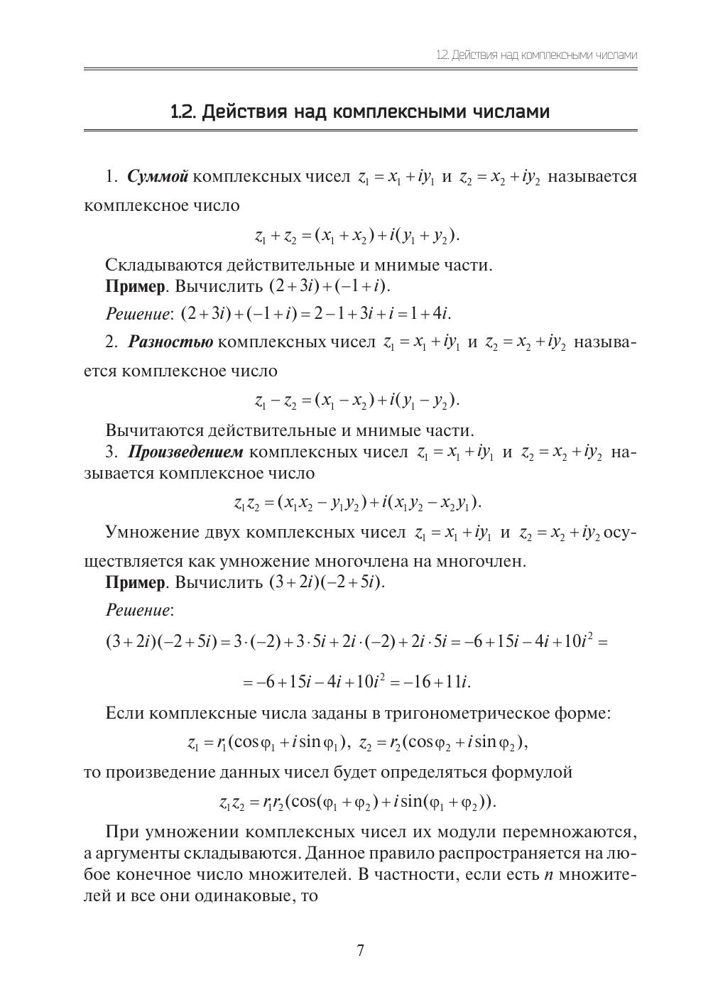 В учебном пособии представлены основные понятия и теоремы теории функций комплексного переменного. Пособие включает следующие темы: основные элементарные функции и их свойства; предел, непрерывность, дифференцирование и интегрирование функций комплексного переменного; ряды в комплексной области; теория вычетов; конформные отображения. Рассмотрены решения типовых задач. Приведены задачи для самостоятельного решения и задания к расчетной работе. Предназначается для студентов, обучающихся по техническим направлениям подготовки и специальностям.