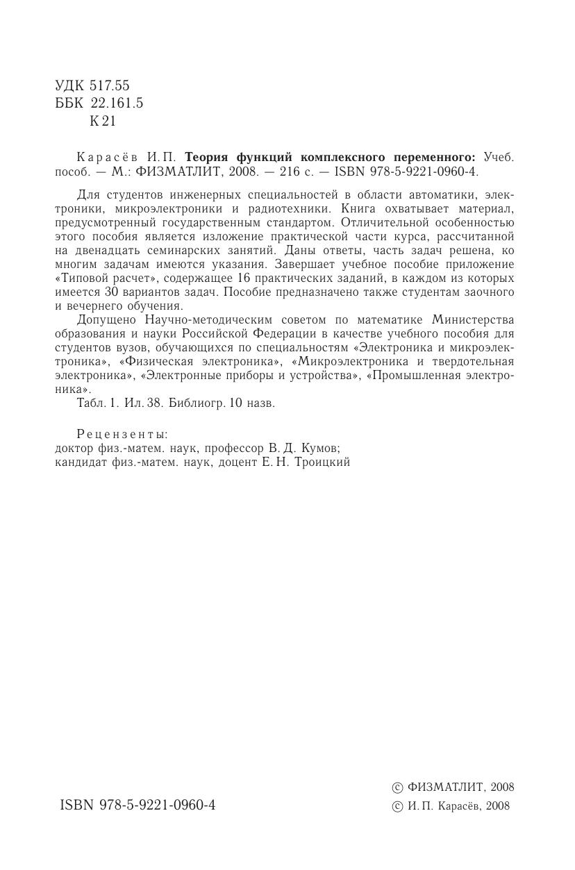 Для студентов инженерных специальностей в области автоматики, элек- троники, микроэлектроники и радиотехники. Книга охватывает материал, предусмотренный государственным стандартом. Отличительной особенностью этого пособия является изложение практической части курса, рассчитанной на двенадцать семинарских занятий. Даныотв еты, часть задач решена, ко многим задачам имеются указания. Завершает учебное пособие приложение «Типовой расчет», содержащее 16 практических заданий, в каждом из которых имеется 30 вариантов задач. Пособие предназначено также студентам заочного и вечернего обучения.