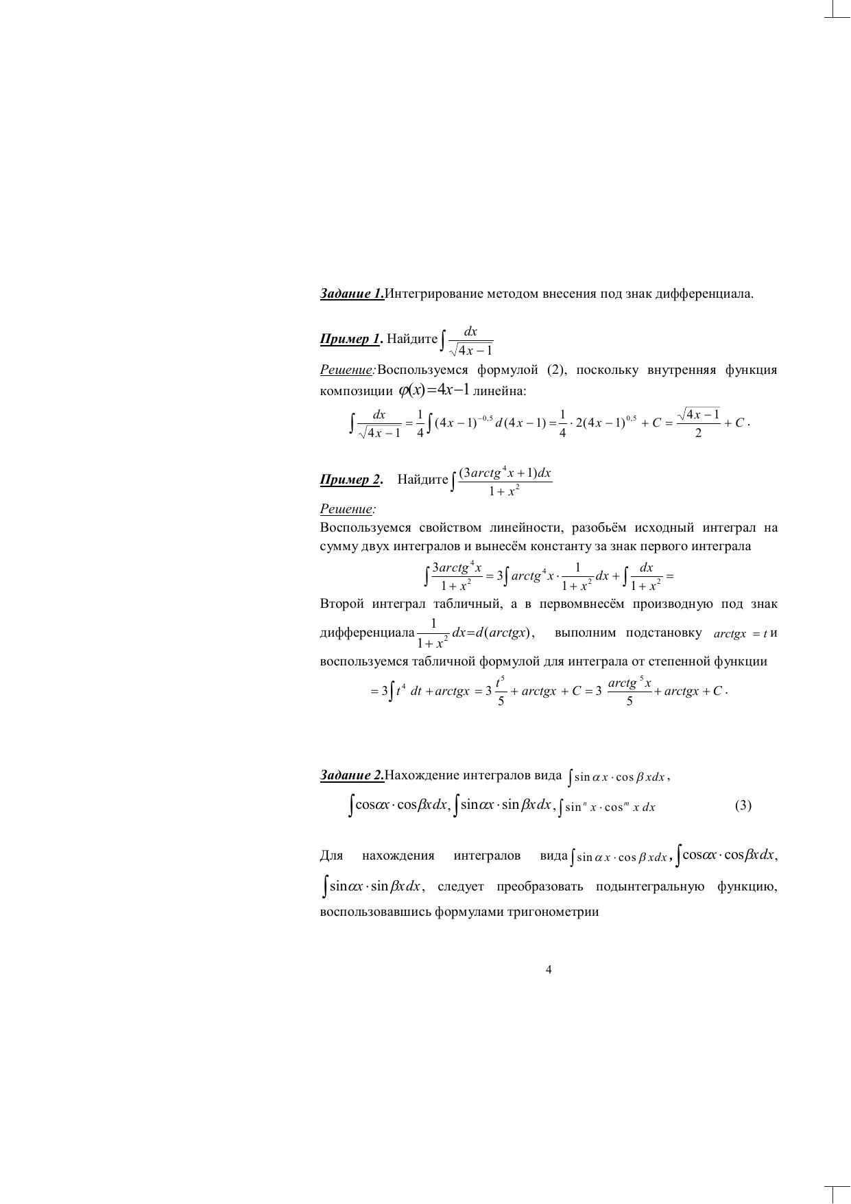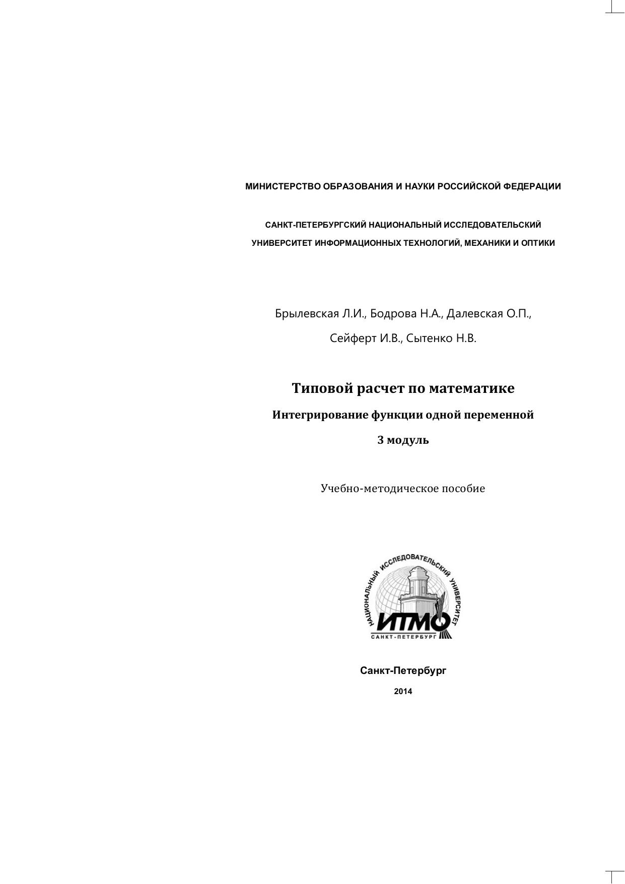 Типовой расчет по математике. Интегрирование функции одной переменной. 3 модуль