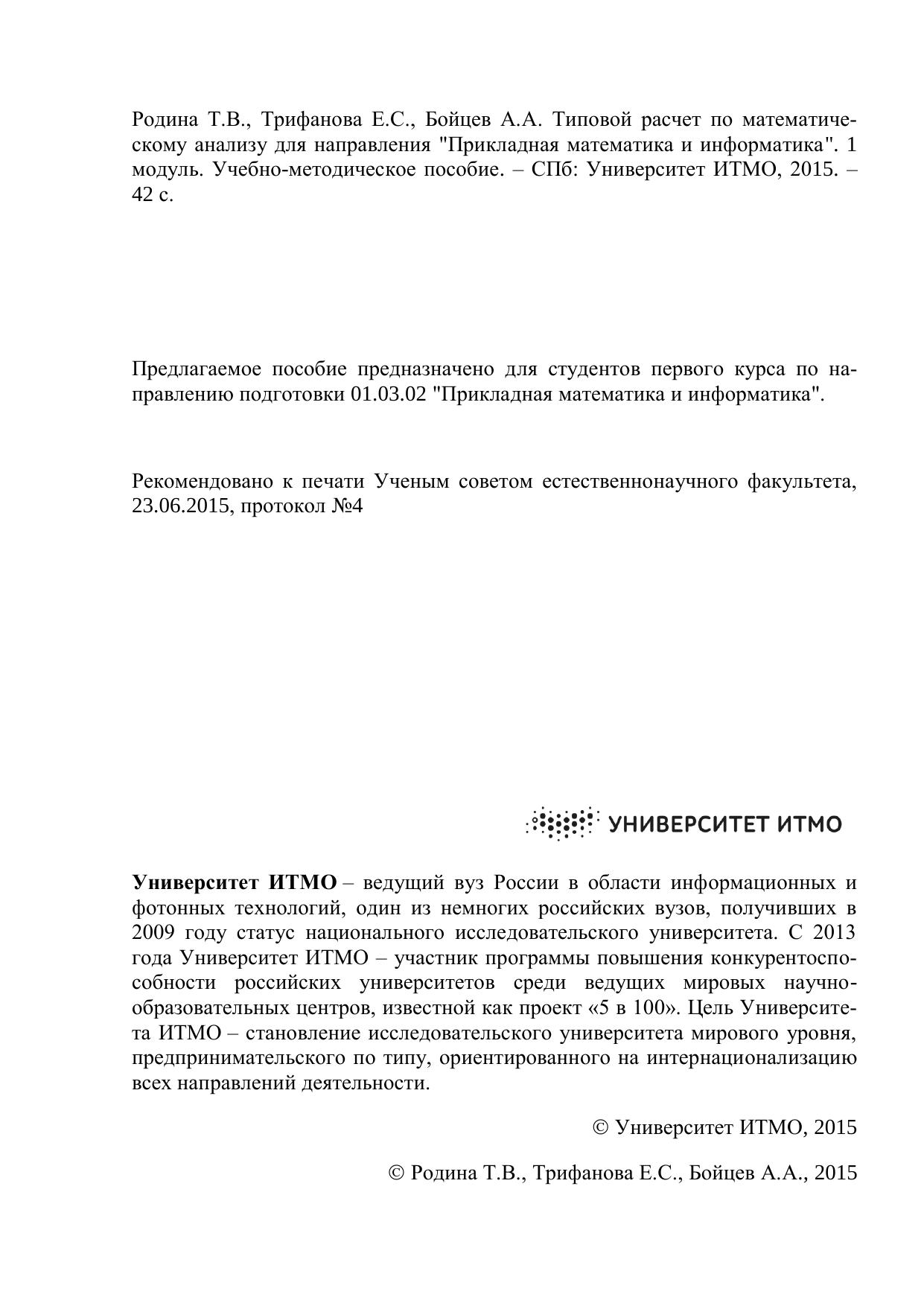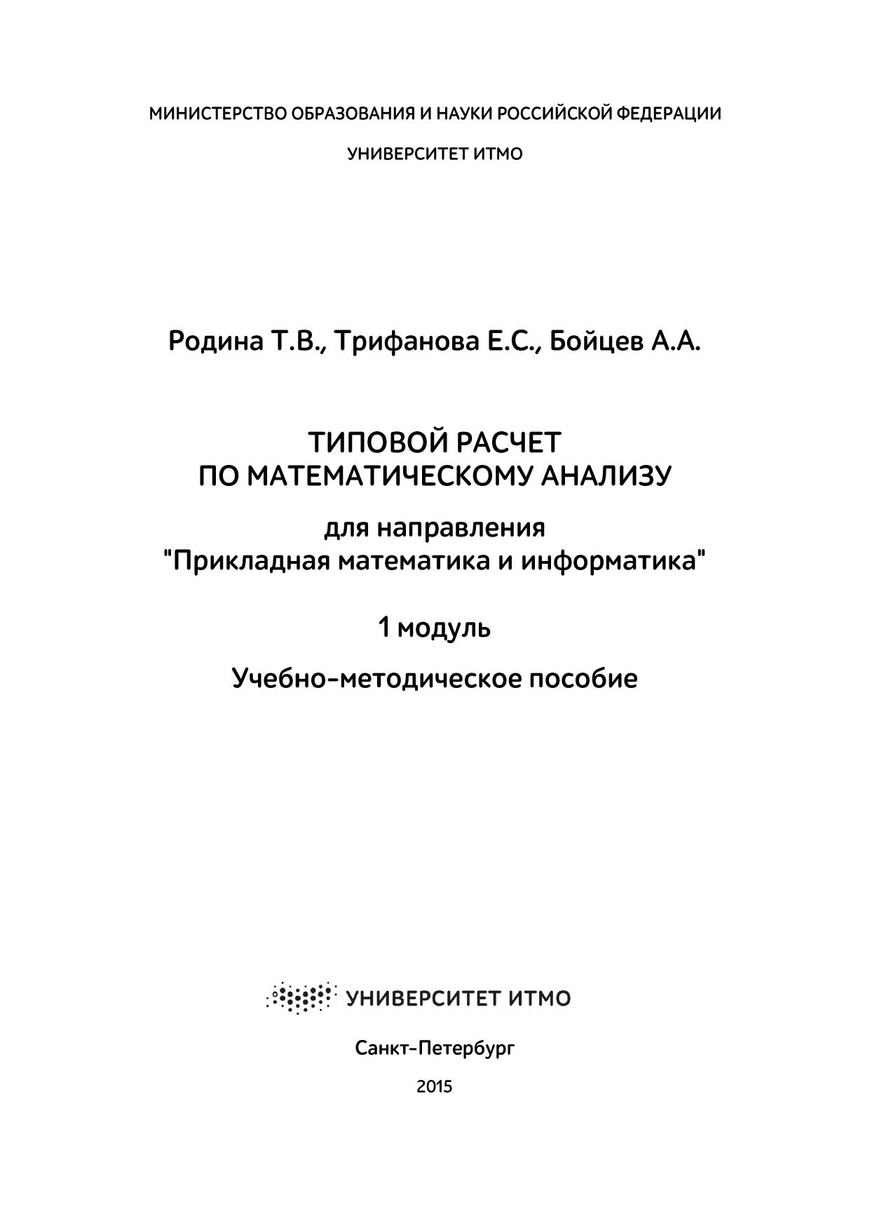 Типовой расчет по математическому анализу для направления "Прикладная математика и информатика". 1 модуль