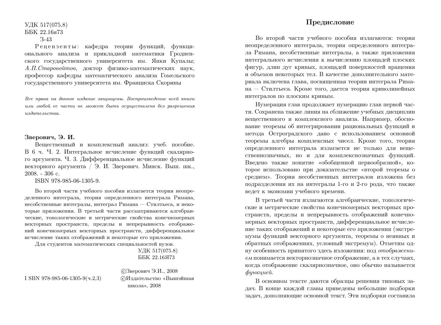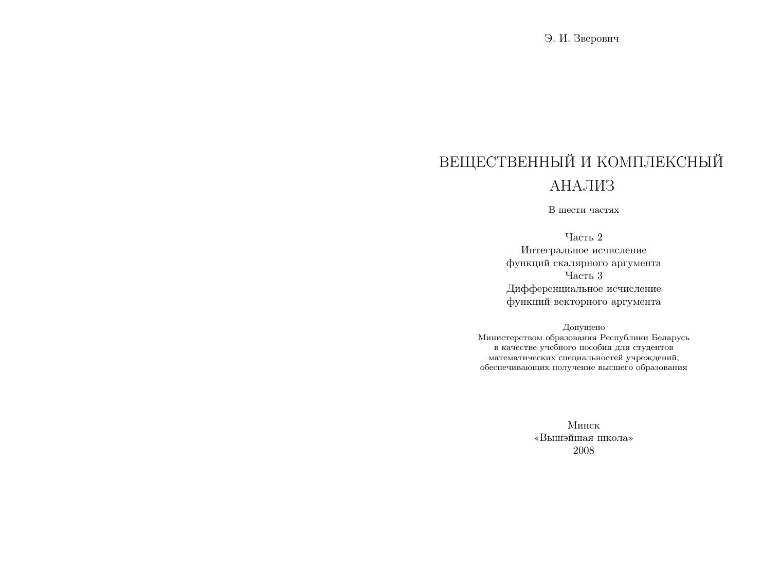 Вещественный и комплексный анализ. В 6 ч. Ч. 2. Интегральное исчисление функций скалярного аргумента. Ч. 3. Дифференциальное исчисление функций векторного аргумента