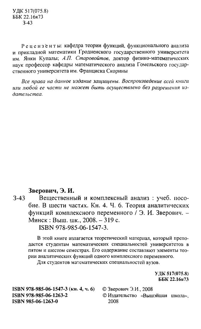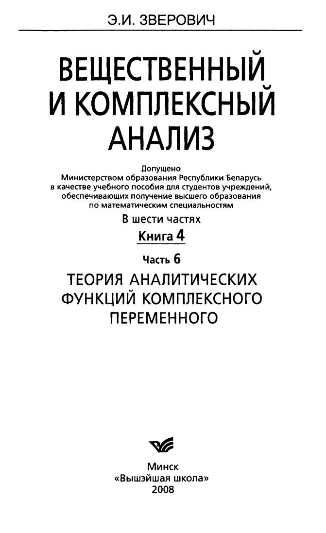 Вещественный и комплексный анализ. В 6 ч. Ч. 6. Теория аналитических функций комплексного переменного