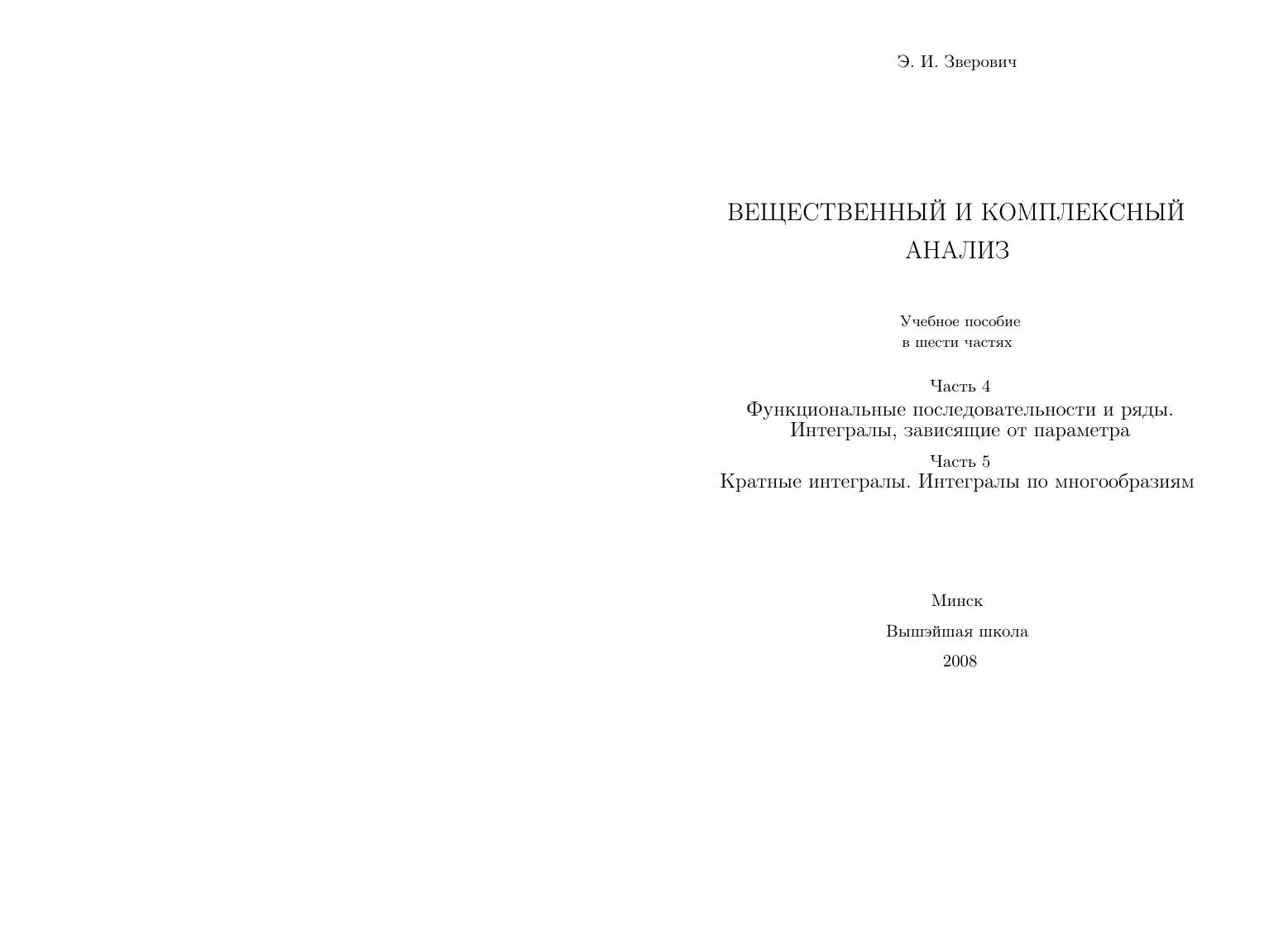 Вещественный и комплексный анализ. В 6 ч. Ч. 4. Функциональные последовательности и ряды. Интегралы, зависящие от параметра. Ч. 5. Кратные интегралы. Интегралы по многообразиям