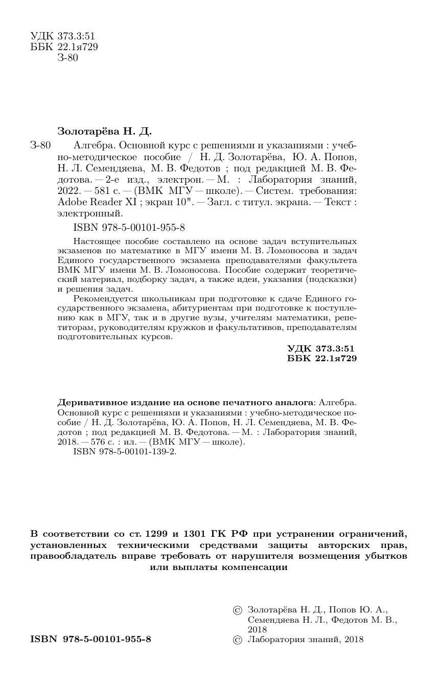 Авторы: Золотарёва Н. Д., Попов Ю. А., Семендяева Н. Л., Федотов М. В.