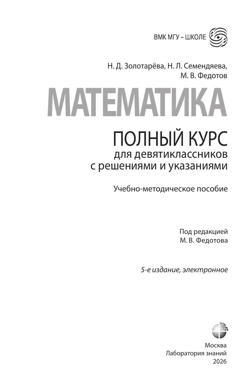 Математика. Полный курс для девятиклассников с решениями и указаниями