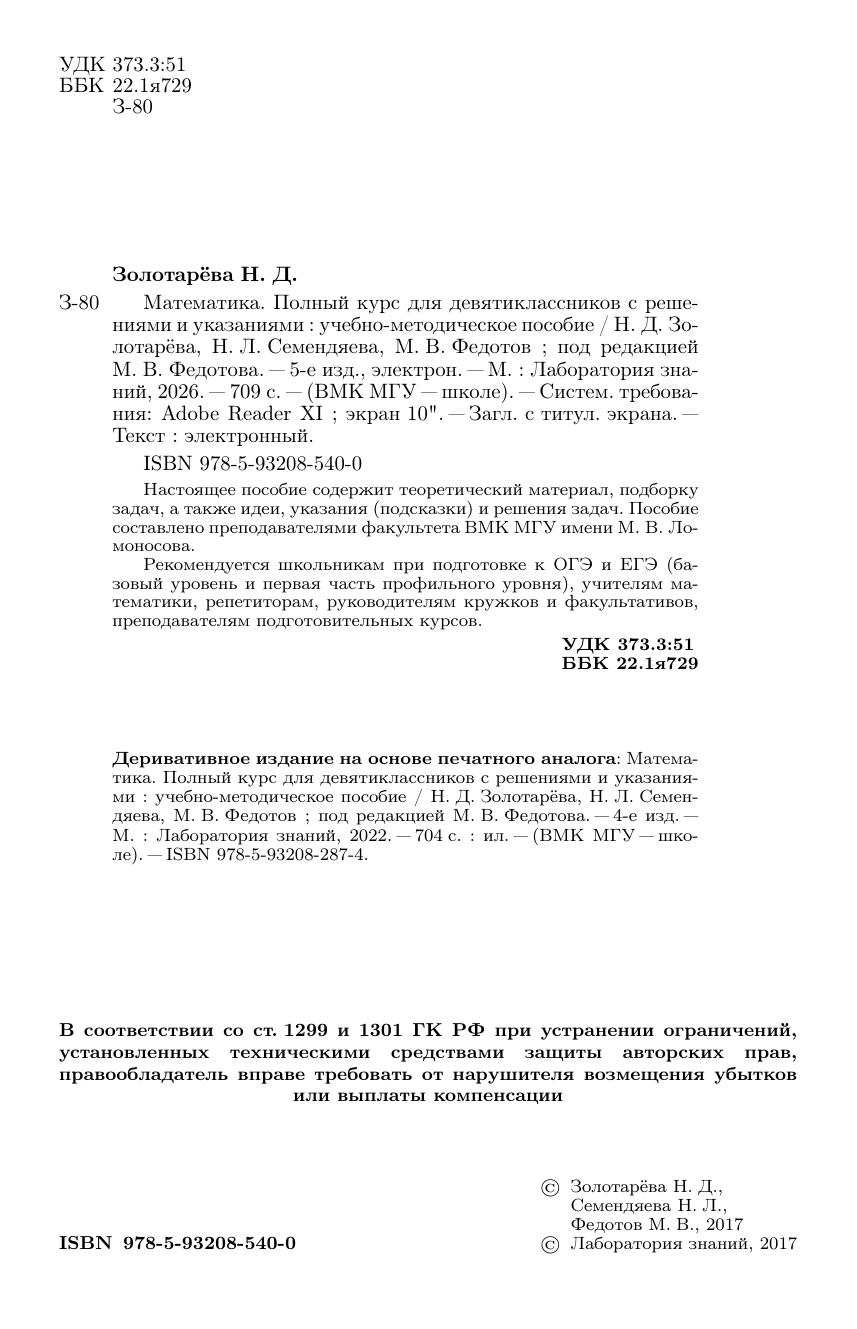 Авторы: Золотарёва Н. Д., Семендяева Н. Л., Федотов М. В.