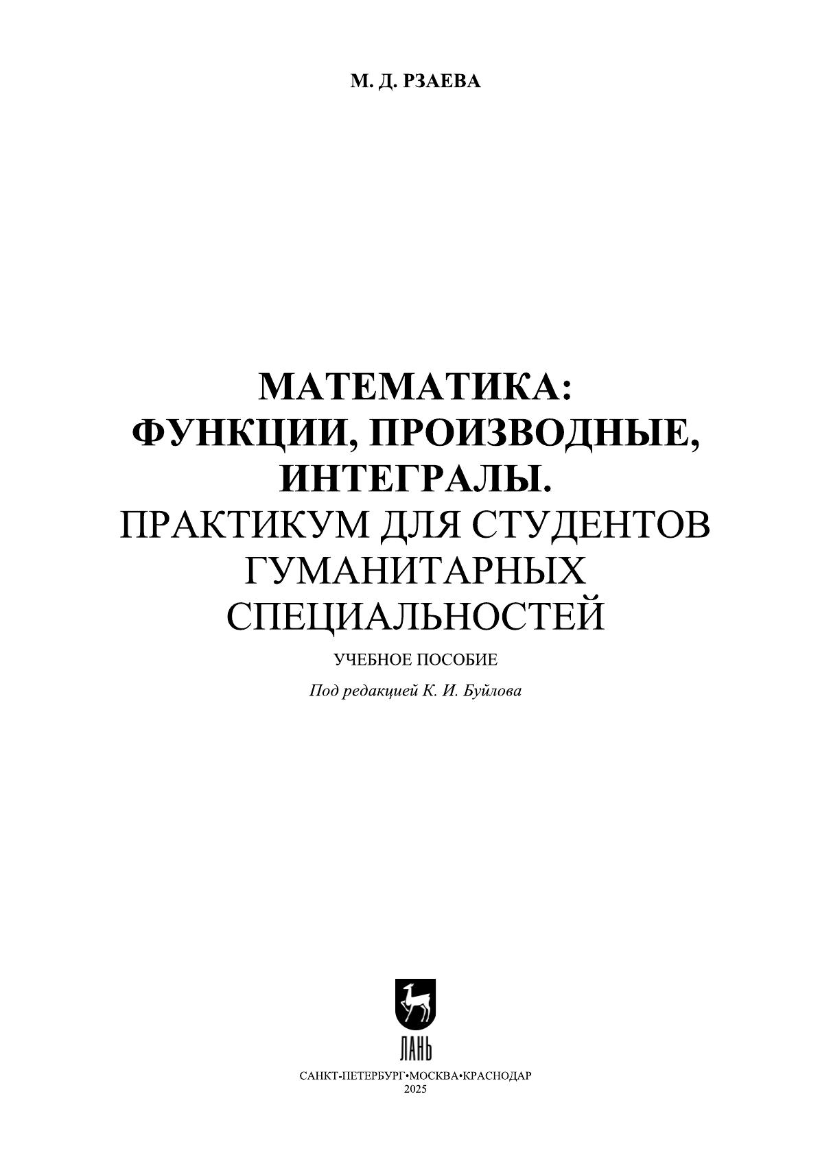 Математика: функции, производные, интегралы. Практикум для студентов гуманитарных специальностей