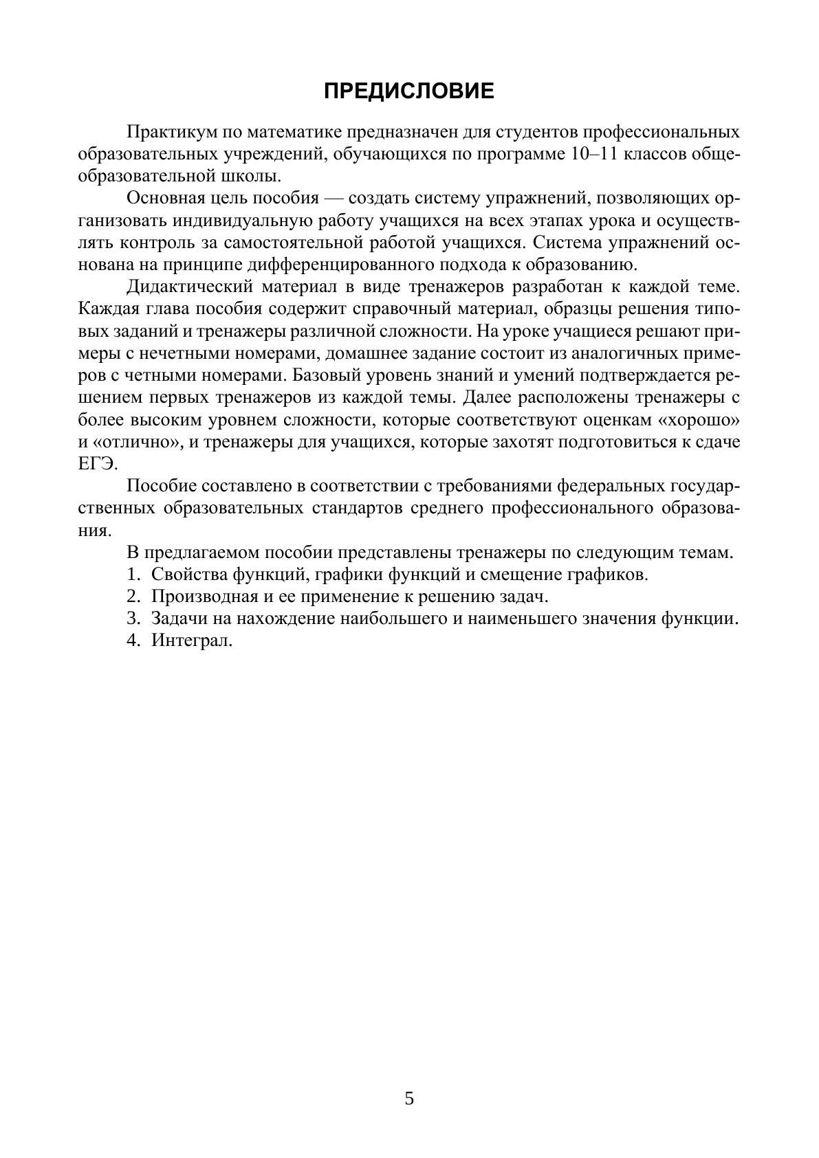 Практикум предназначен для студентов СПО II курса гуманитарного профиля и направлен на успешное освоение учащимися учебной дисциплины «Математика и информатика». Пособие содержит математические формулы, образцы решения заданий и комплекс тренажеров по темам математики в соответствии с программой. Практикум позволяет преподавателю осуществить дифференцированный принцип обучения и способствует созданию ситуации успешности для учащихся. Соответствует современным требованиям Федерального государственного образовательного стандарта среднего профессионального образования и профессиональным квалификационным требованиям.