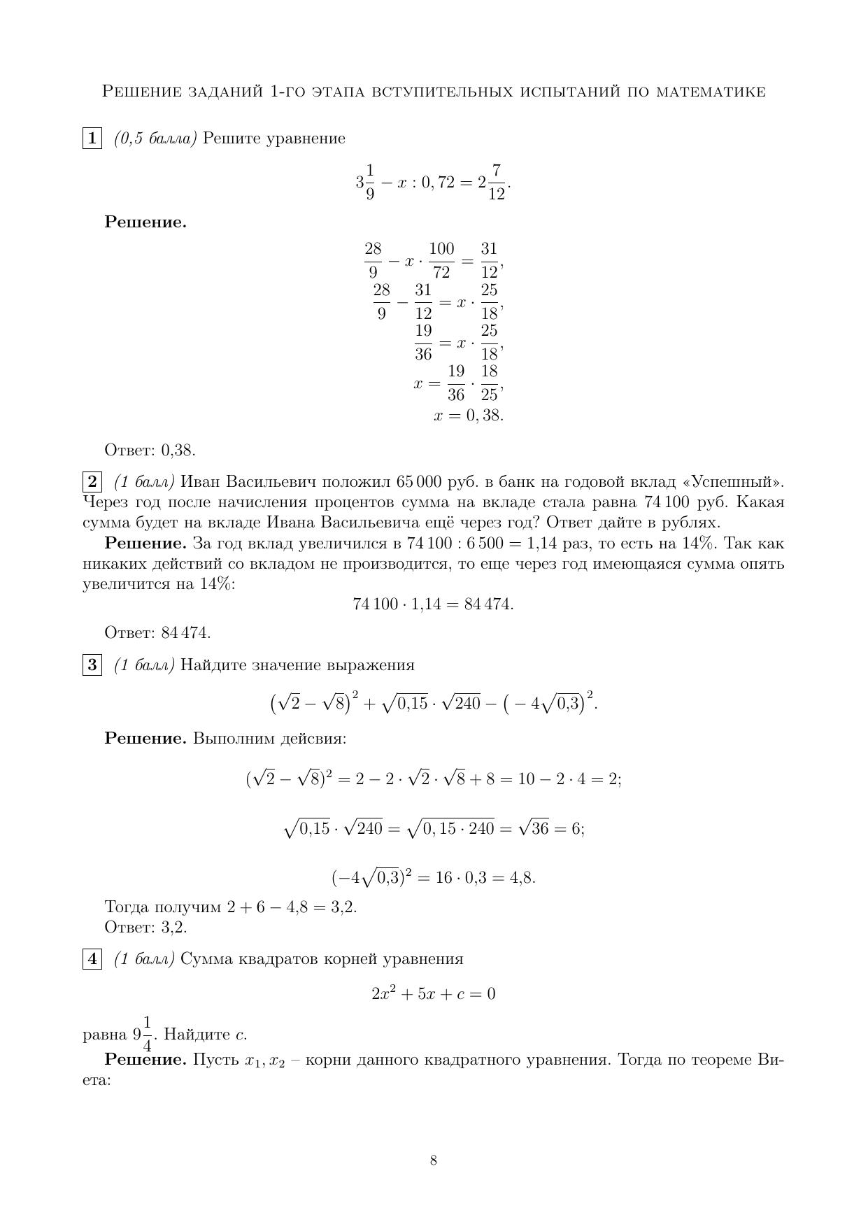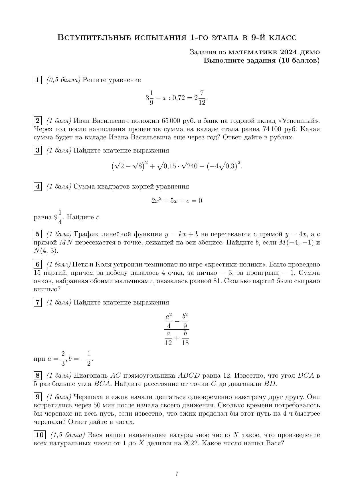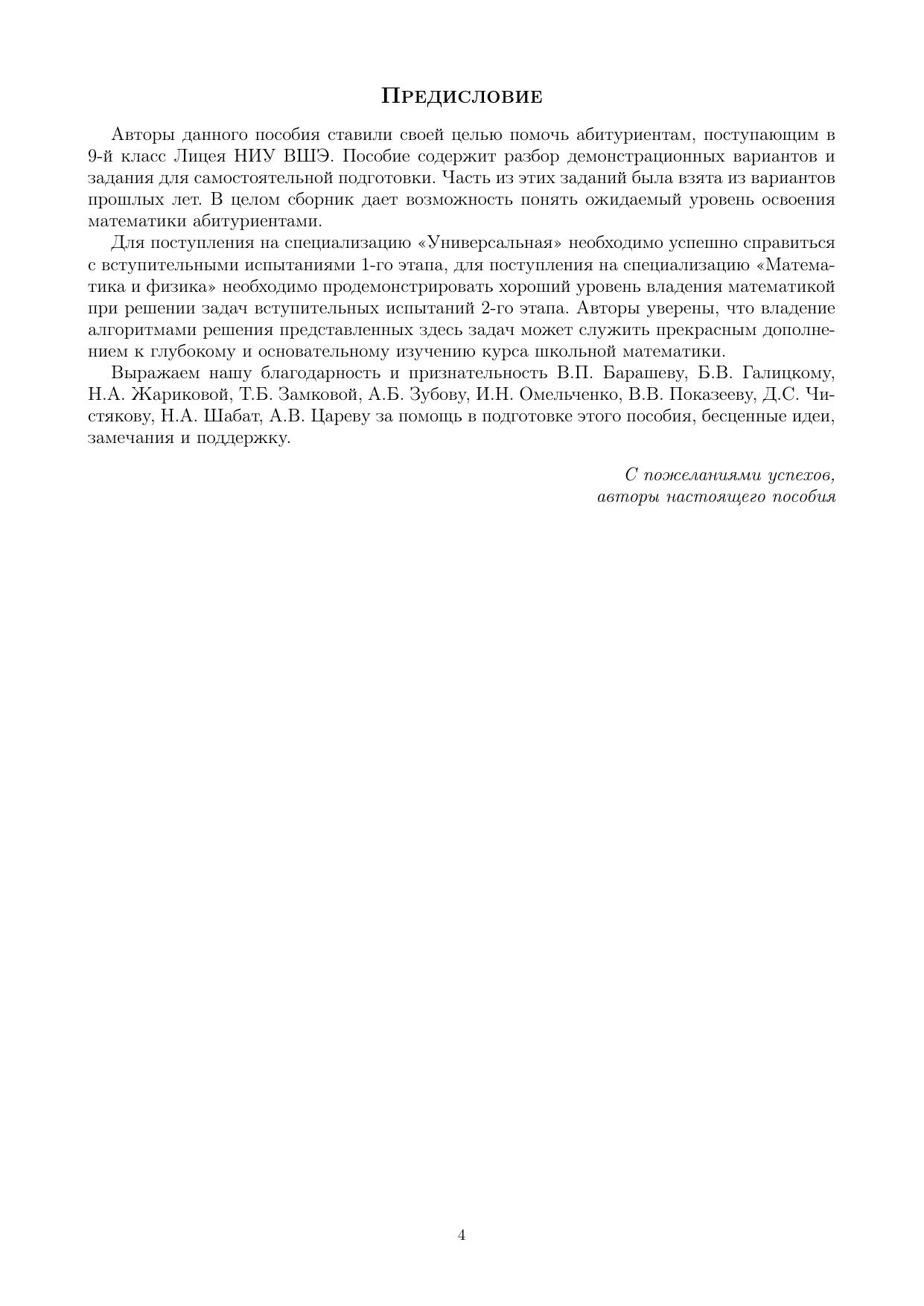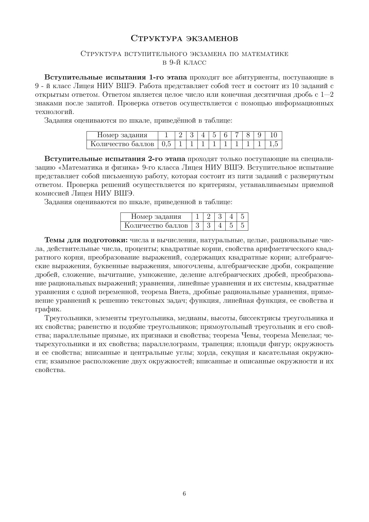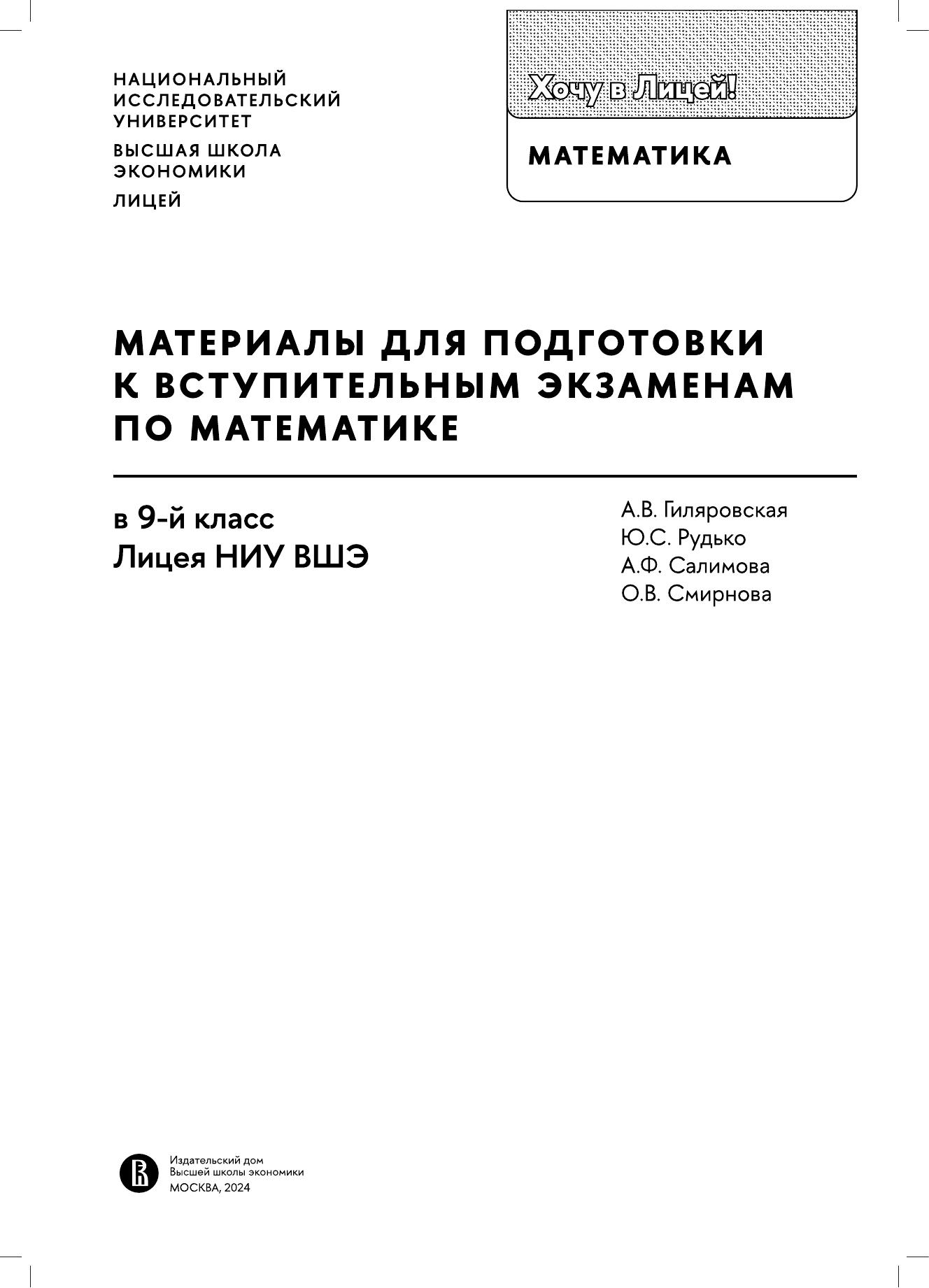 Материалы для подготовки к вступительным экзаменам по математике в 9-й класс Лицея НИУ ВШЭ