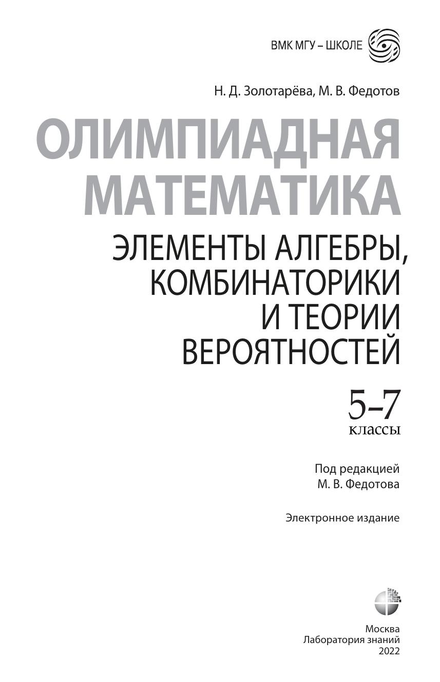 Олимпиадная математика. 5-7 классы. Элементы алгебры, комбинаторики и теории вероятностей