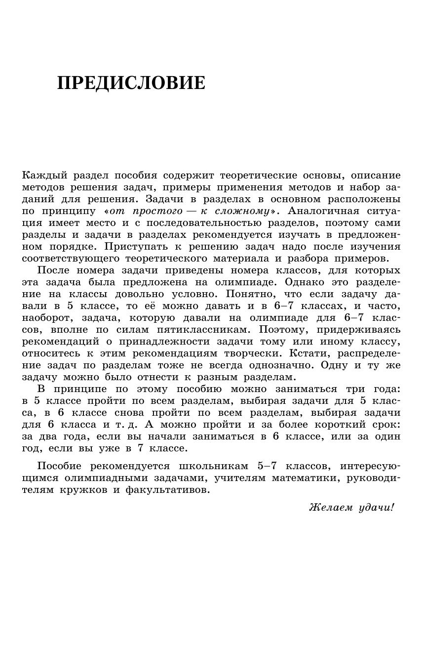 Рекомендуется школьникам 5–7 классов, интересующимся олимпиадными задачами, учителям математики, руководителям кружков и факультативов.