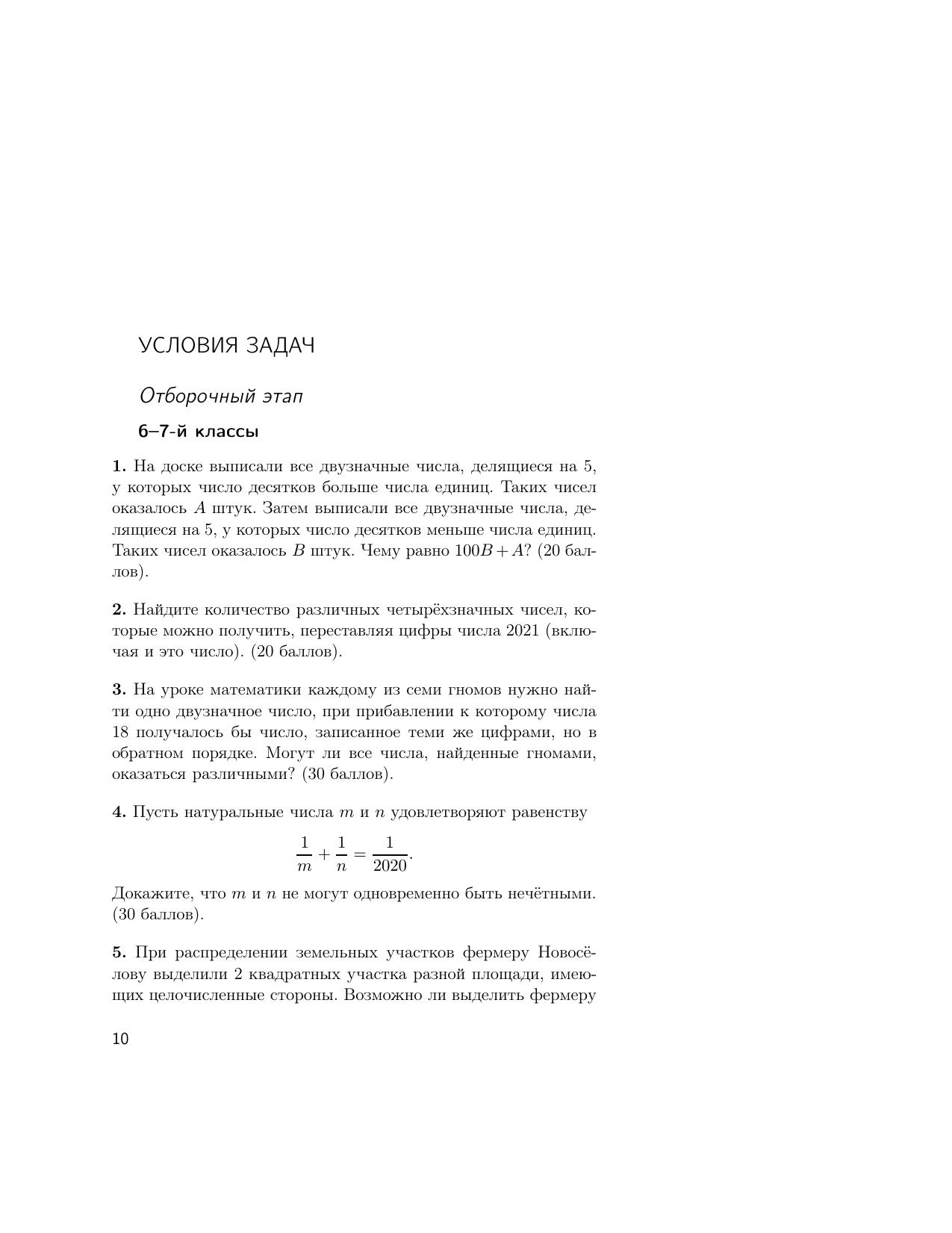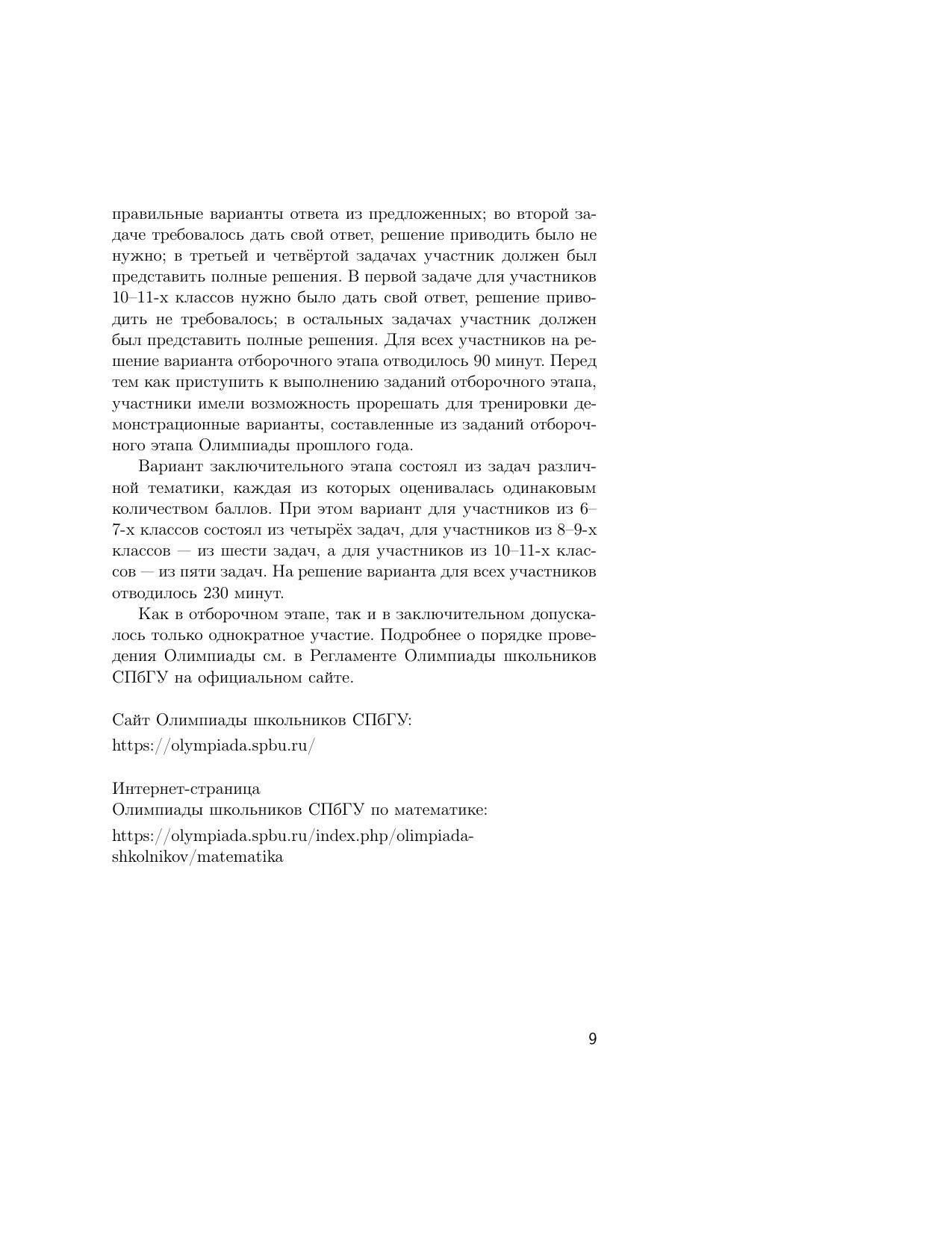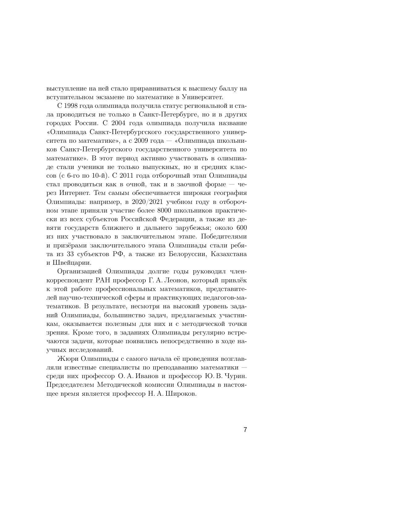В пособии представлены примеры заданий отборочного и заключительного этапов Олимпиады школьников СПбГУ по математике за 2020/2021 учебный год. Все задачи сопровождаются подробными решениями; также даются общие методические указания с разбором типичных ошибок участников.
