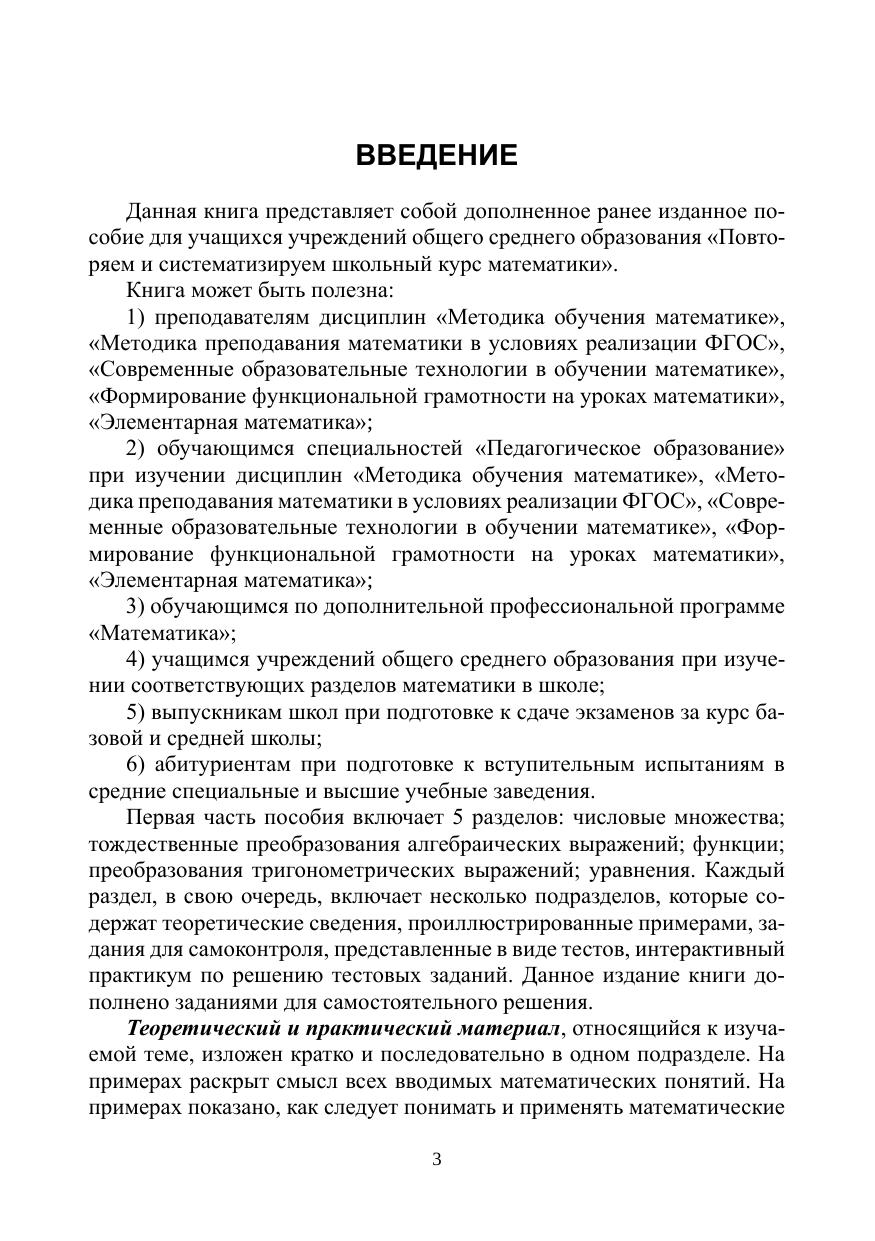 Книга представляет собой интерактивное пособие, предназначенное для систематизации знаний по элементарной математике, началам математического анализа и геометрии за курс средней школы. Каждый подраздел содержит теоретические сведения, проиллюстрированные примерами, задания для самоконтроля, представленные в виде тестов, интерактивный практикум по решению тестовых заданий и задания для самостоятельного решения.