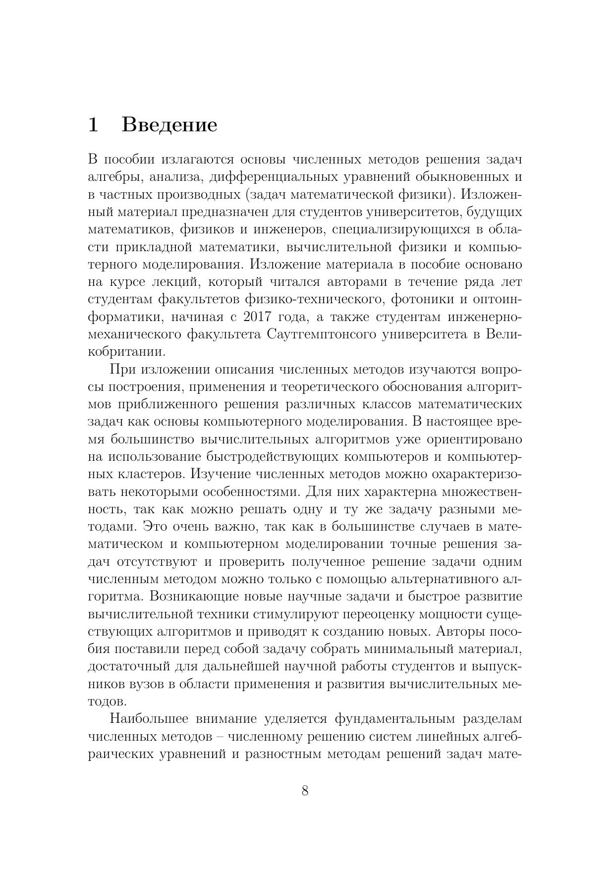 В пособии излагаются основные принципы построения и исследования численных методов решения различных классов математических задач компьютерного моделирования. Наряду с традиционными разделами теории, такими как интерполирование и аппроксимация, численное интегрирование, методы решения задач Коши для обыкновенных дифференциальных уравнений, значительное место занимают разностные методы для уравнений в частных производных, а также методы Ритца и Галеркина, метод конечных элементов и метод граничных интегральных уравнений.