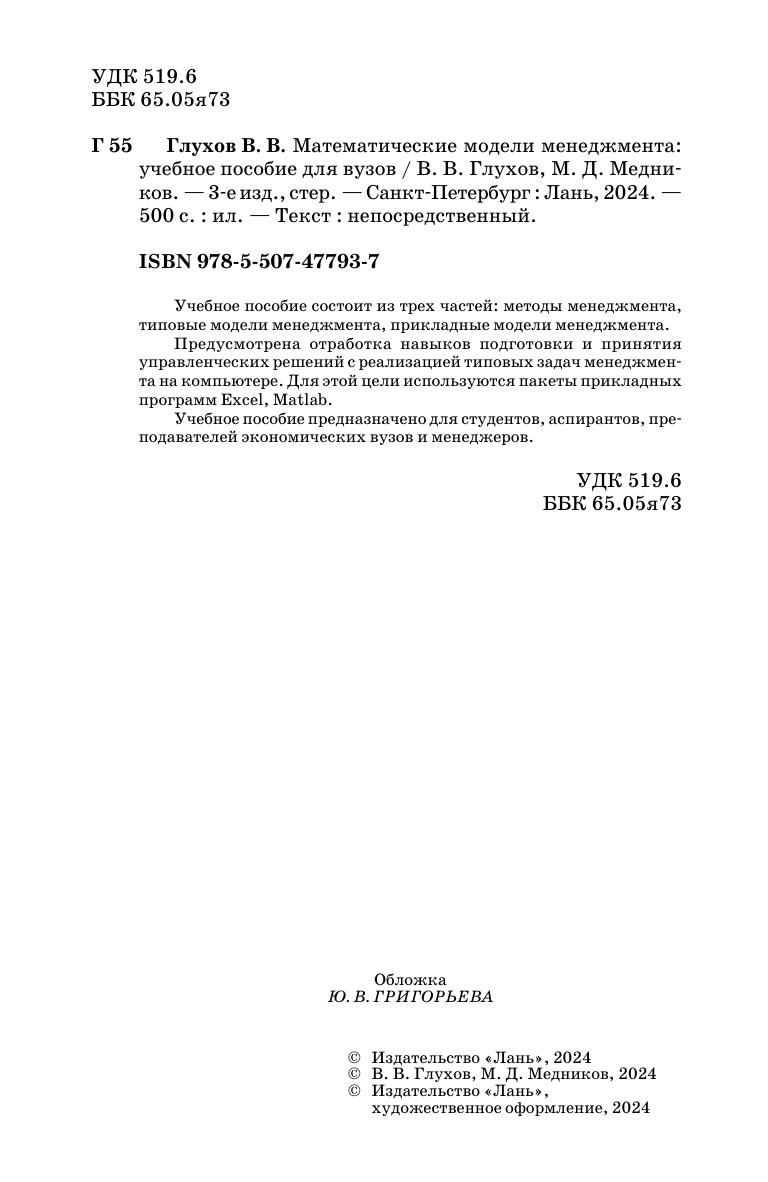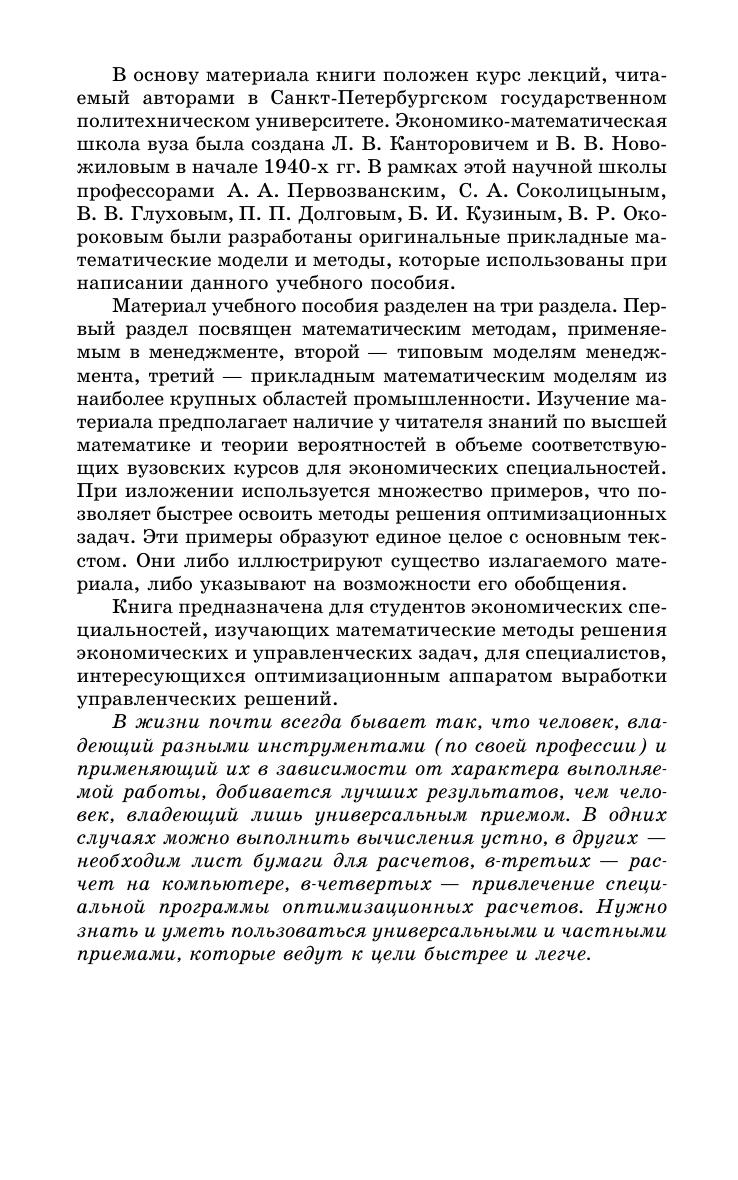 Учебное пособие состоит из трех частей: методы менеджмента, типовые модели менеджмента, прикладные модели менеджмента. Предусмотрена отработка навыков подготовки и принятия управленческих решений с реализацией типовых задач менеджмента на компьютере. Для этой цели используются пакеты прикладных программ QSB, Excel, Matlab. Учебное пособие предназначено для студентов, обучающихся по специальности «Экономика и управление на предприятии» и направлению подготовки «Экономика и управление», профиль «Менеджмент», а также аспирантов и преподавателей экономических вузов, менеджеров.