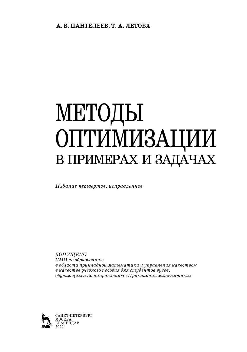 Авторы: Пантелеев А. В., Летова Т. А.