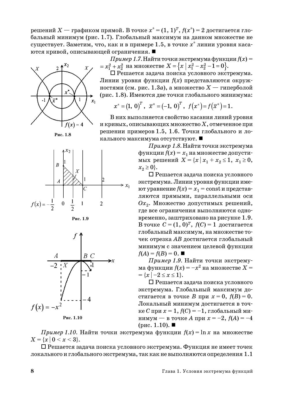 Рассмотрены аналитические методы решения задач поиска экстремума функций многих переменных на основе необходимых и достаточных условий. Изложены численные методы нулевого, первого и второго порядков решения задач безусловной минимизации, а также численные методы поиска условного экстремума. Описаны алгоритмы решения задач линейного программирования, целочисленного программирования, транспортных задач. Приведены методы решения задач поиска безусловного и условного экстремума функционалов на основе метода вариаций. В каждом разделе кратко изложены основные теоретические сведения, приведены решения типовых примеров и задачи для самостоятельного решения с ответами. Учебное пособие поддерживает компетентностную модель обучения: содержит модели требуемых знаний и умений решать типовые задачи предмета. Для студентов высших учебных заведений, получающих образование по направлению (специальности) «Прикладная математика», а также по направлениям (специальностям) естественных наук, техники и технологий, информатики и экономики на квалификацию специалиста, степени бакалавра и магистра.