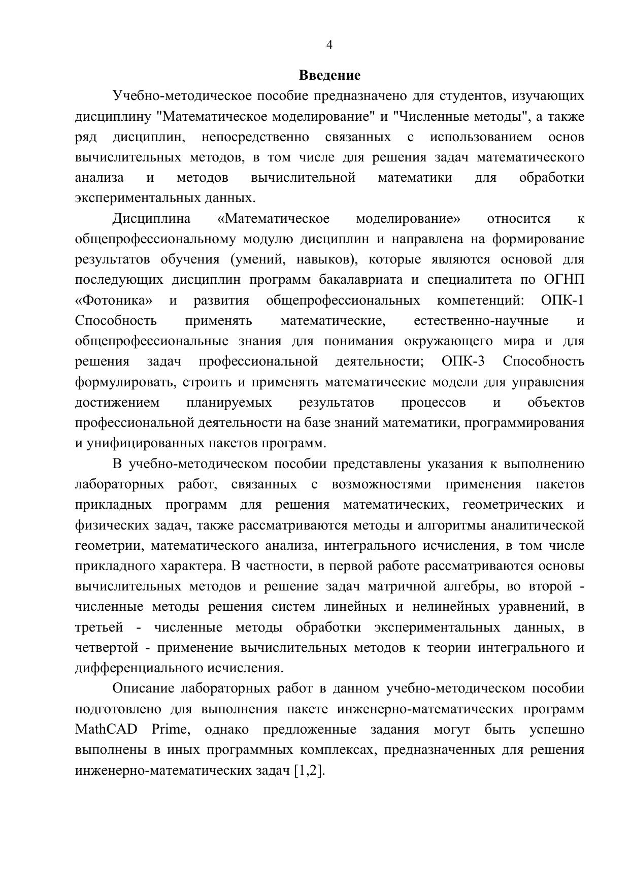 В учебно-методическом пособии представлены краткие теоретические сведения, порядок выполнения лабораторных работ и варианты индивидуальных заданий для использования при изучении дисциплины «Математическое моделирование». Представленный материал может быть также полезен при выполнении курсовых и выпускных квалификационных работ. Учебно-методическое пособие предназначено для бакалавров и специалистов, обучающихся по направлению подготовки 12.04