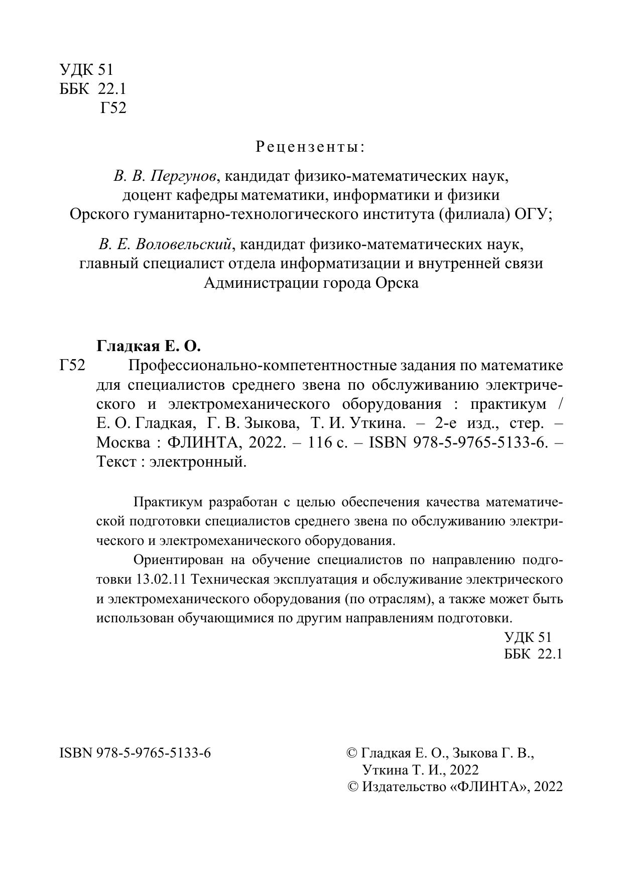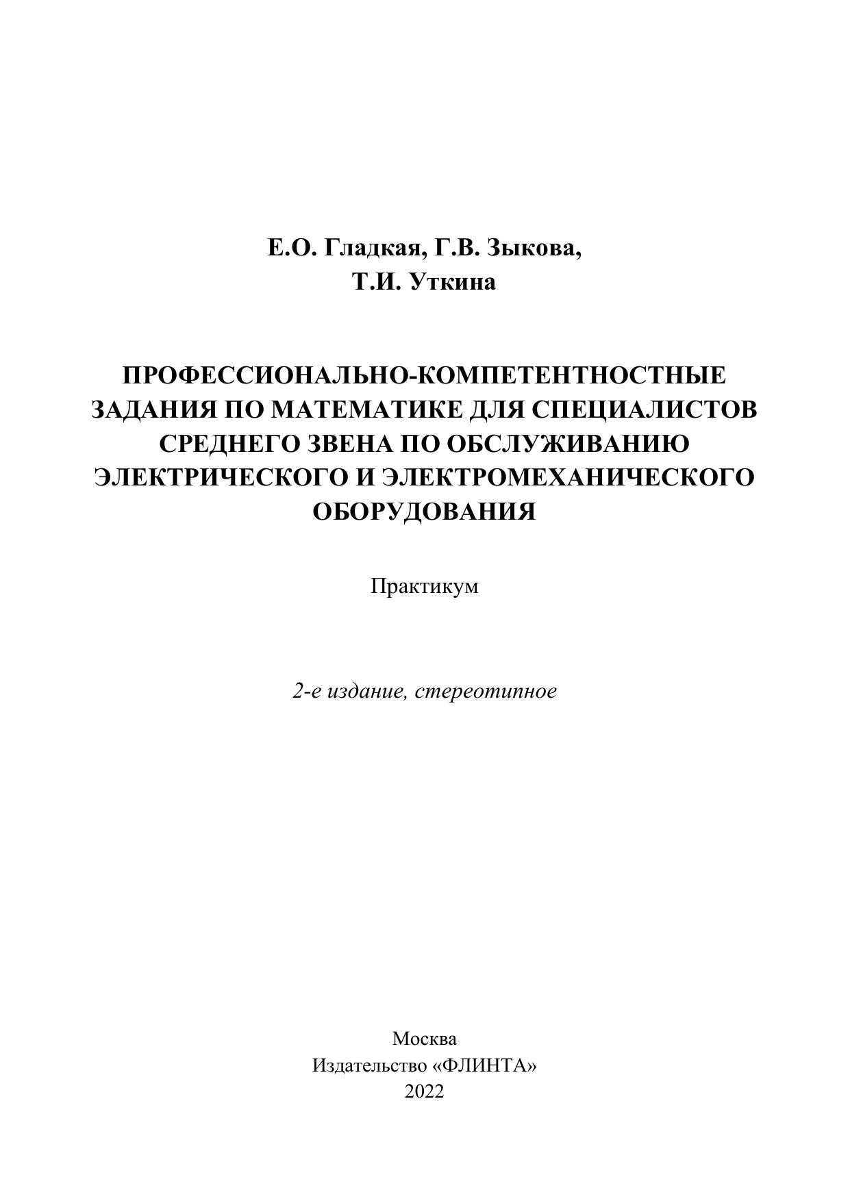 Профессионально-компетентностные задания по математике для специалистов среднего звена по обслуживанию электрического и электромеханического оборудования