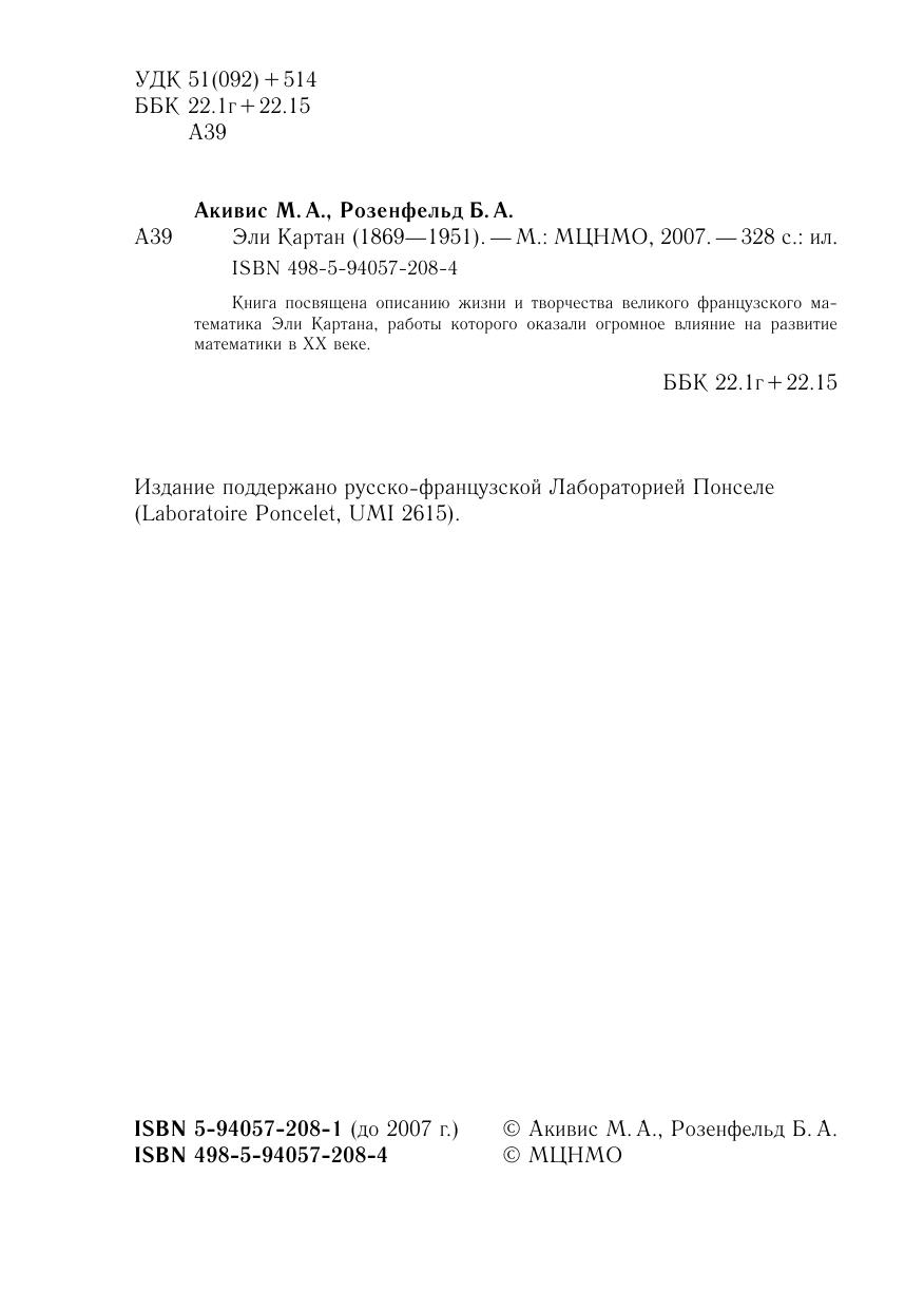 Книга посвящена описанию жизни и творчества великого французского математика Эли Картана, работы которого оказали огромное влияние на развитие математики в XX веке.